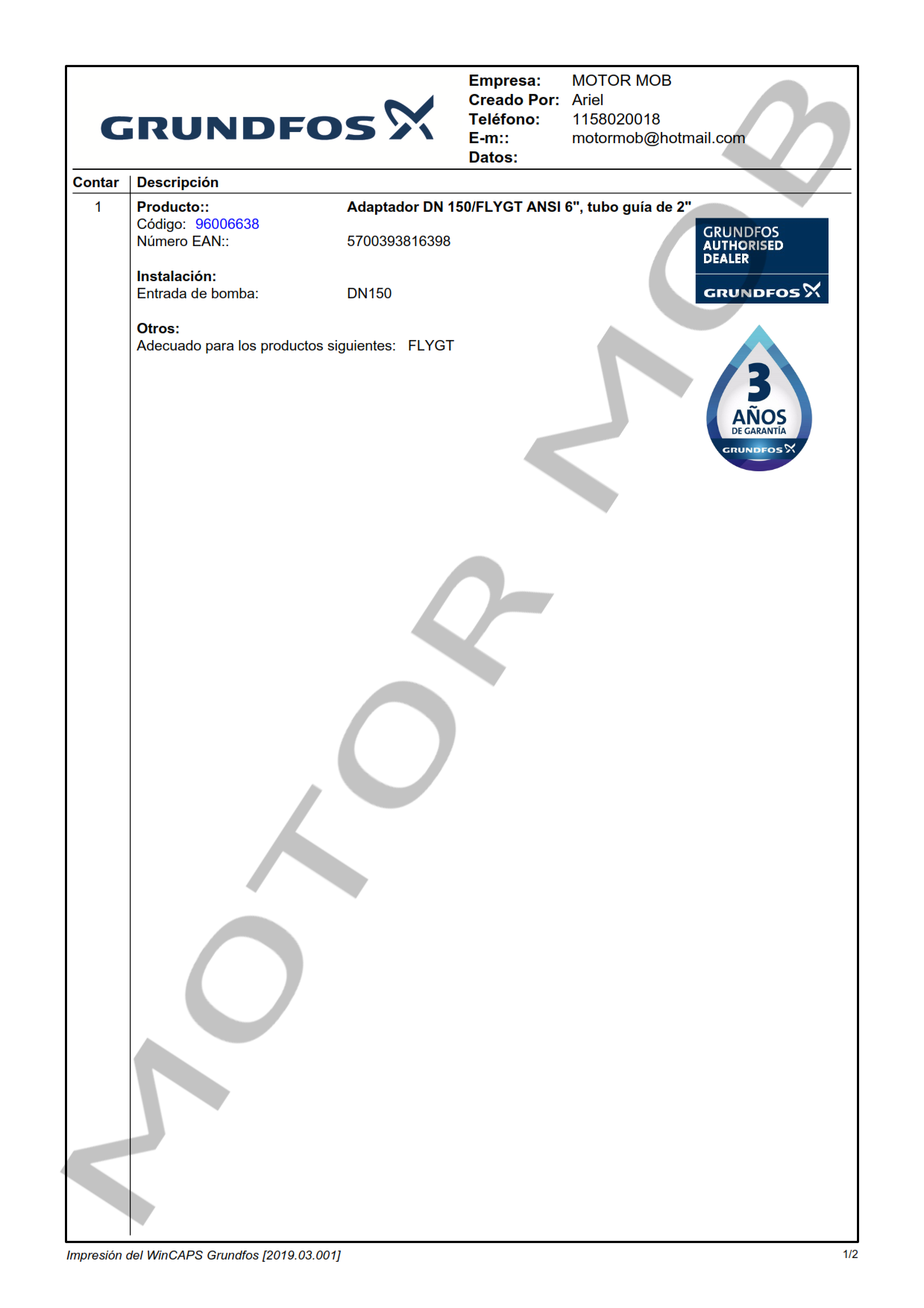 Sé el primero en valorar “ADAPTADOR PARA AUTOACOPLAMIENTO GRUNDFOS DN 150/DN 150 ARTICULO 96006638 – PRECIO”