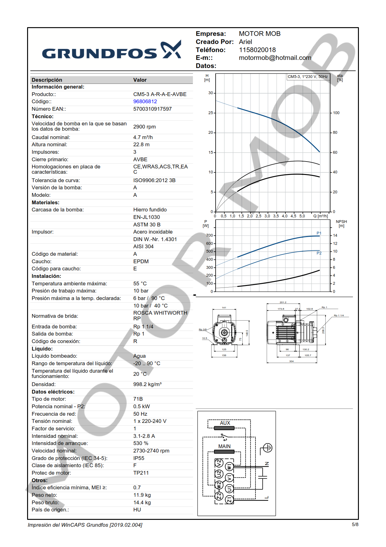 BOMBA CENTRIFUGA HORIZONTAL – GRUNDFOS – CM 5-3 – 0.87 HP – MONOFASICA – ARTICULO 96806812