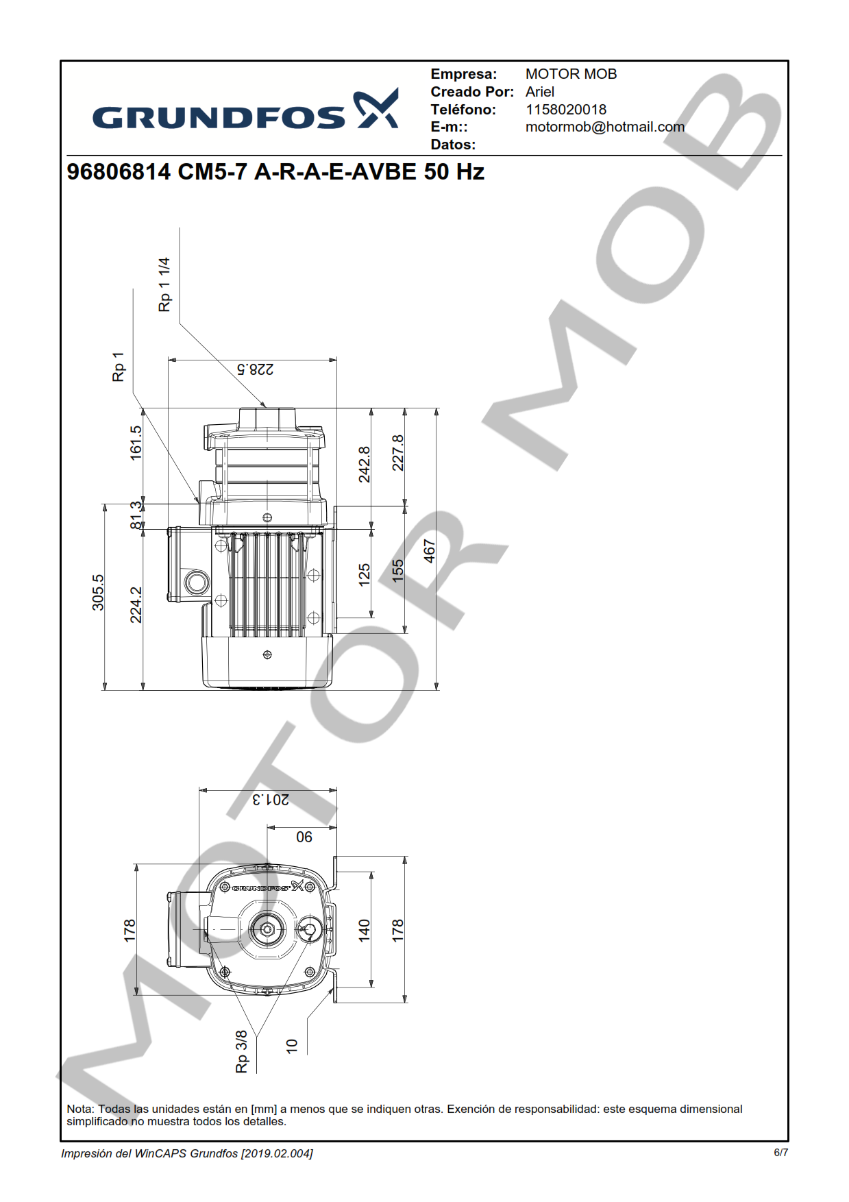 BOMBA CENTRIFUGA HORIZONTAL – GRUNDFOS – CM 5-7 – 2.12 HP – MONOFASICA – ARTICULO 96806814