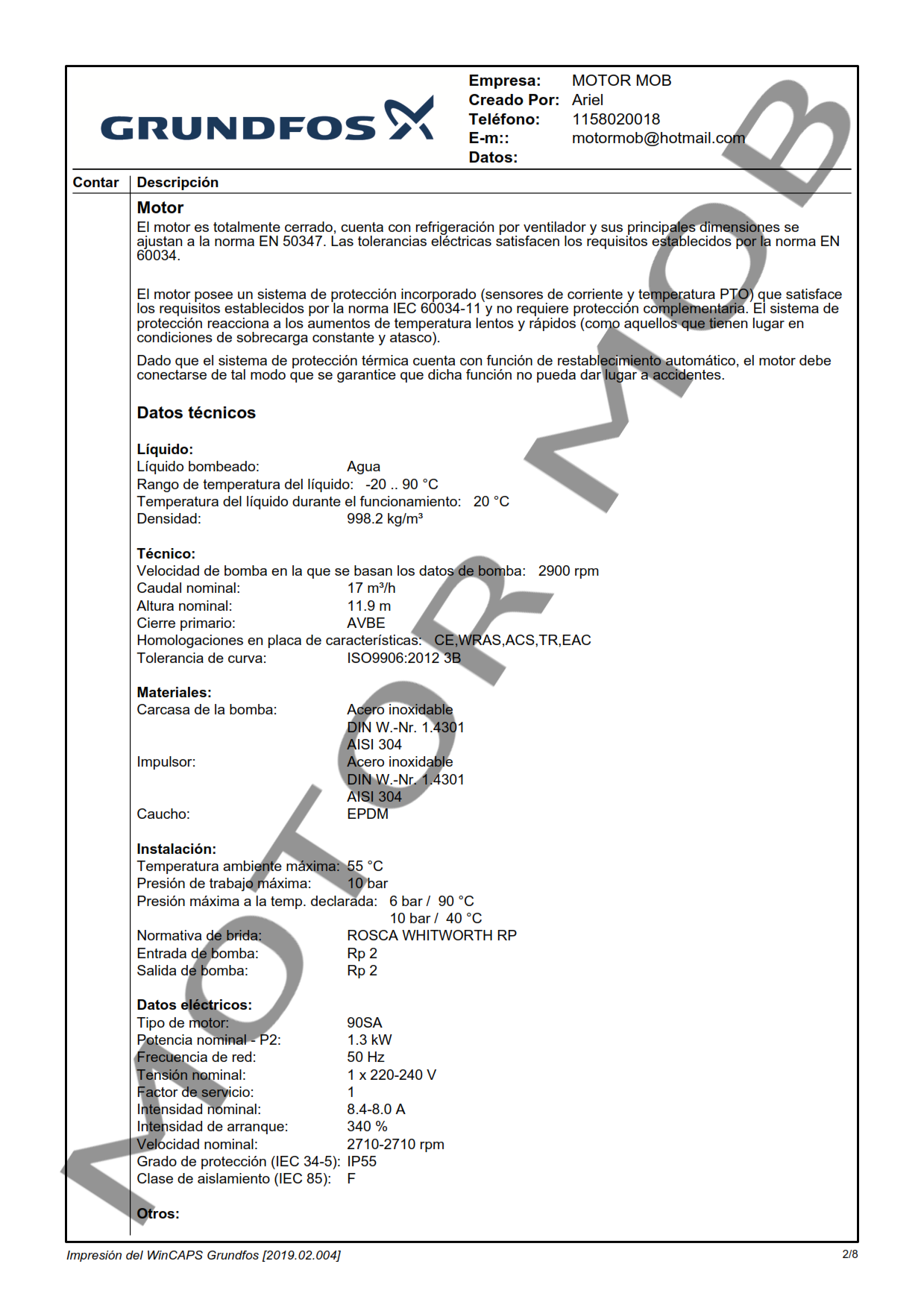 - Eje, impulsor y cámara intermedia en acero inoxidable