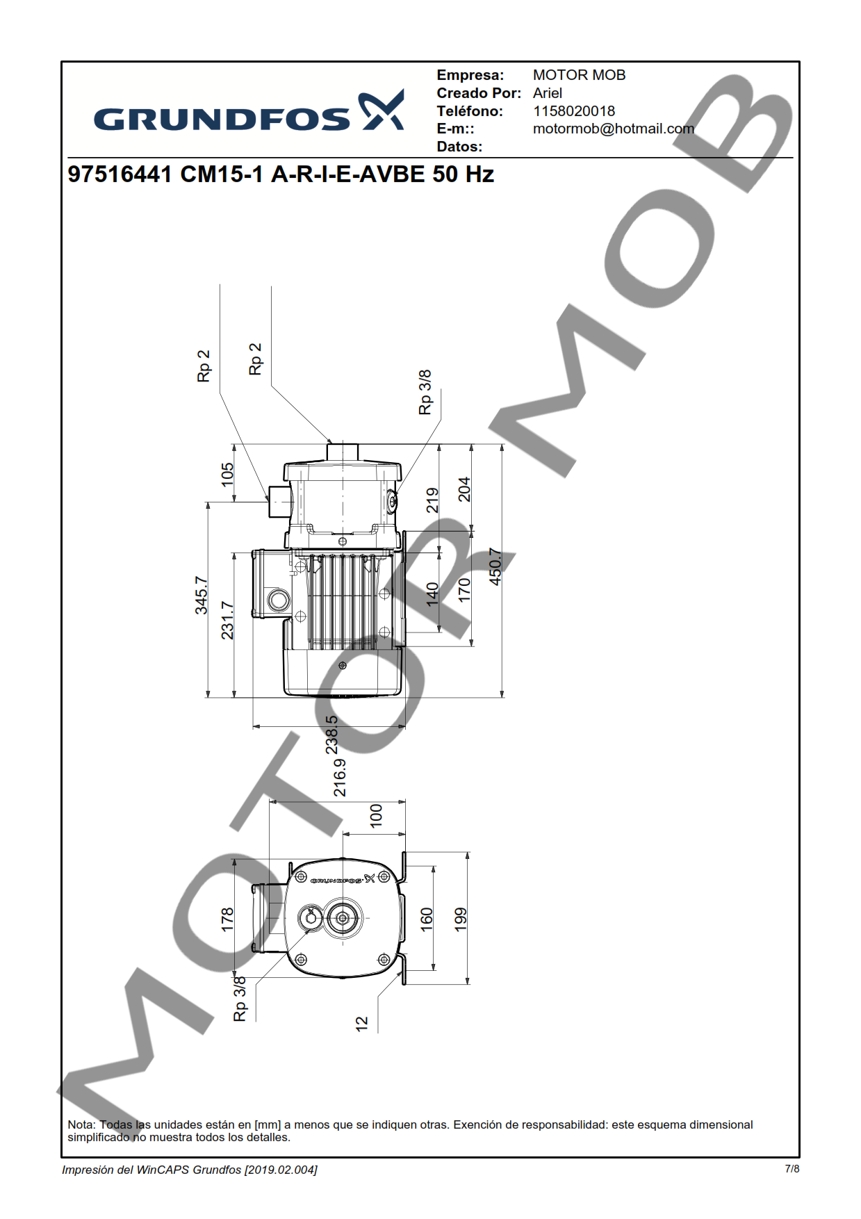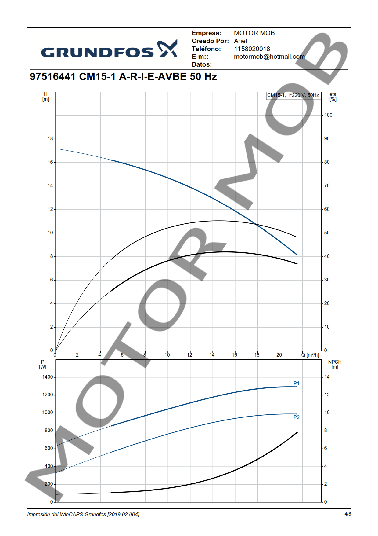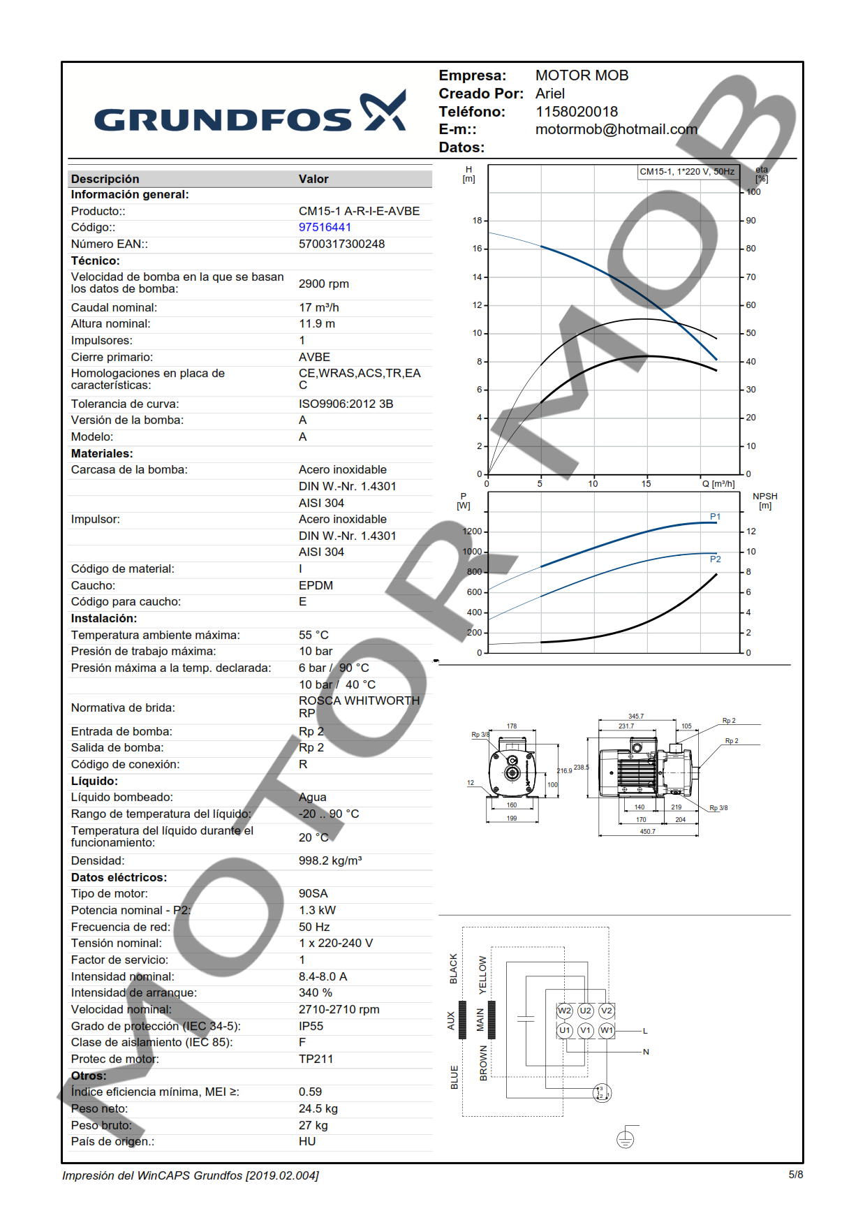 BOMBA CENTRIFUGA HORIZONTAL – GRUNDFOS – CMI 15-1 – 1.94 HP – MONOFASICA – ARTICULO 97516441