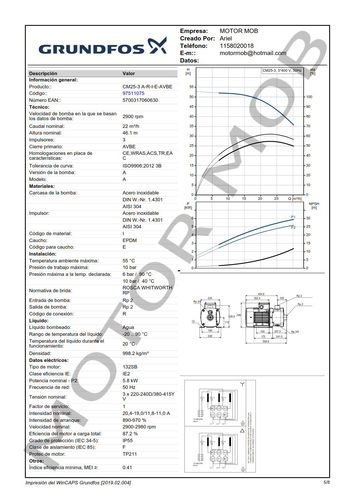 BOMBA CENTRIFUGA HORIZONTAL – GRUNDFOS – CMI 25-3 – 7.77 HP – TRIFASICA – ARTICULO 97511075