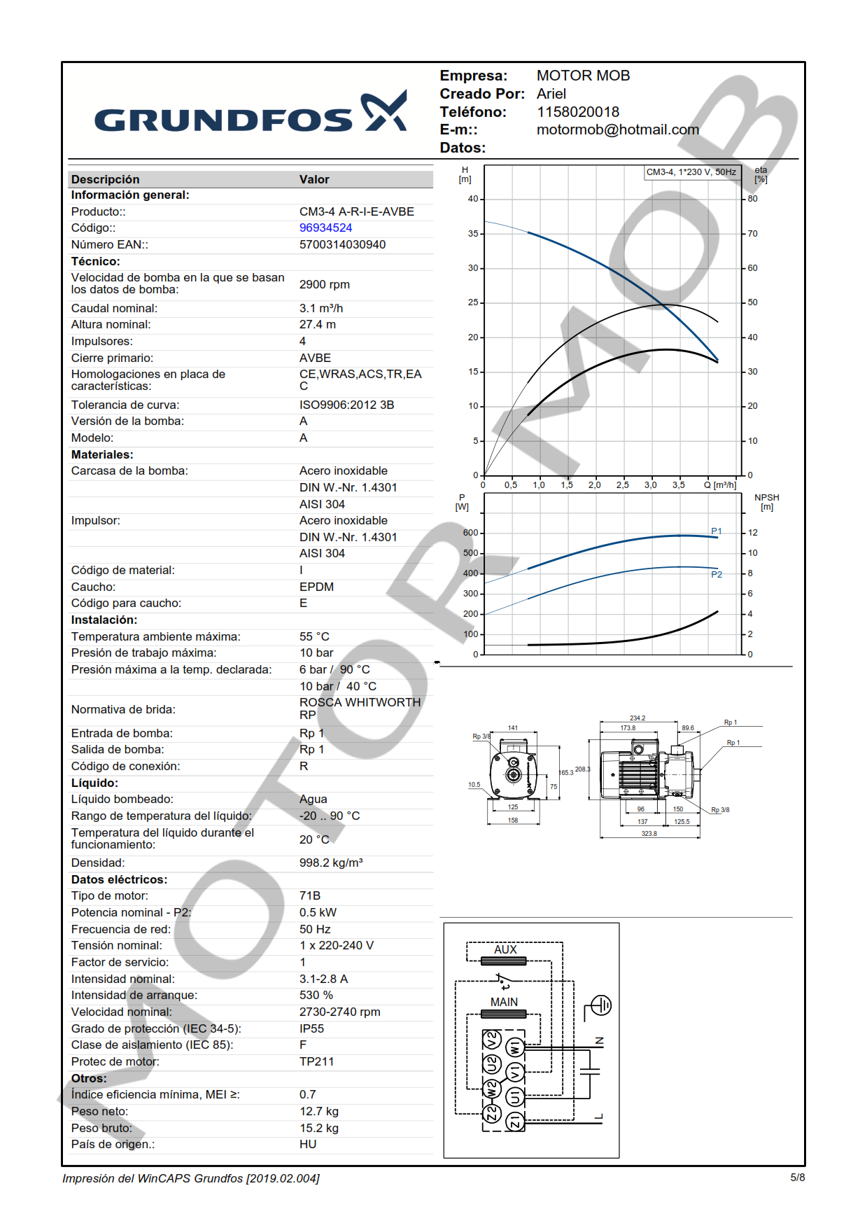 BOMBA CENTRIFUGA HORIZONTAL – GRUNDFOS – CMI 3-4 – 0.60 HP – MONOFASICA – ARTICULO 96934524