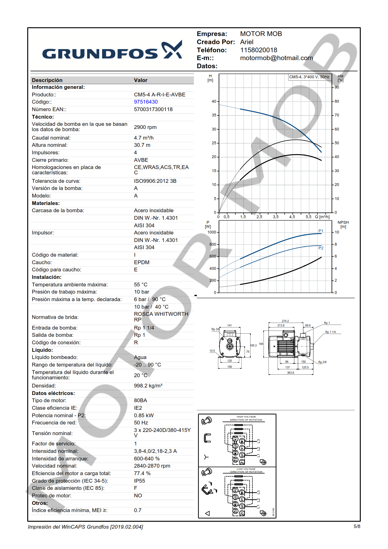 BOMBA CENTRIFUGA HORIZONTAL – GRUNDFOS – CMI 5-4 – 1.13 HP – TRIFASICA – ARTICULO 97516430