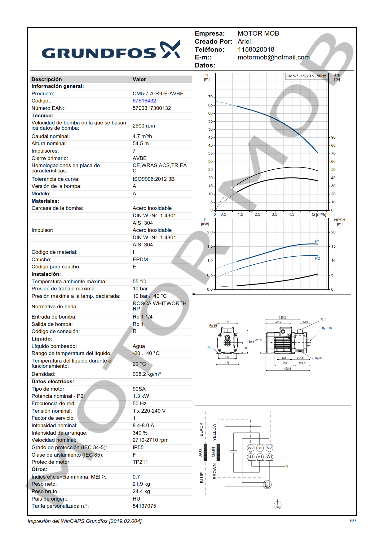 BOMBA CENTRIFUGA HORIZONTAL – GRUNDFOS – CMI 5-7 – 2.12 HP – MONOFASICA – ARTICULO 97516432