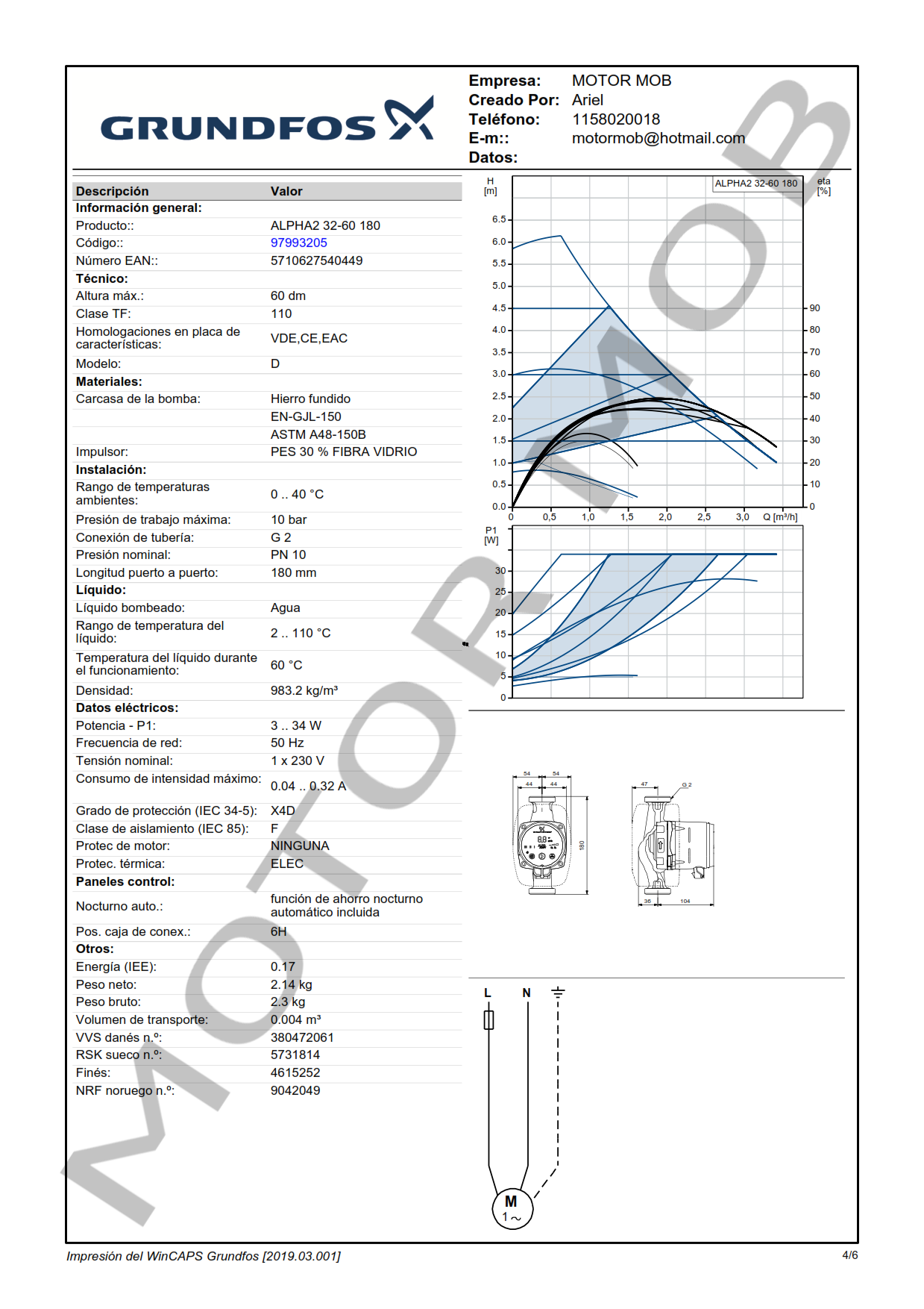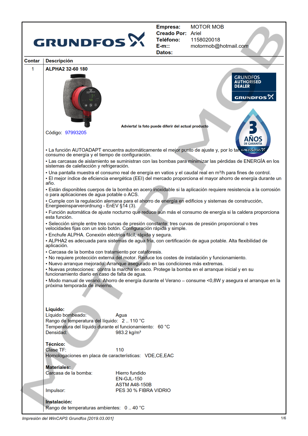 BOMBA CIRCULADORA PARA CALEFACCIÓN Y REFRIGERACIÓN AUTOLIMPIANTE CON VELOCIDAD VARIABLE GRUNDFOS ALPHA2 32-60 MONOFASICA ARTICULO 97993205 – PRECIO
