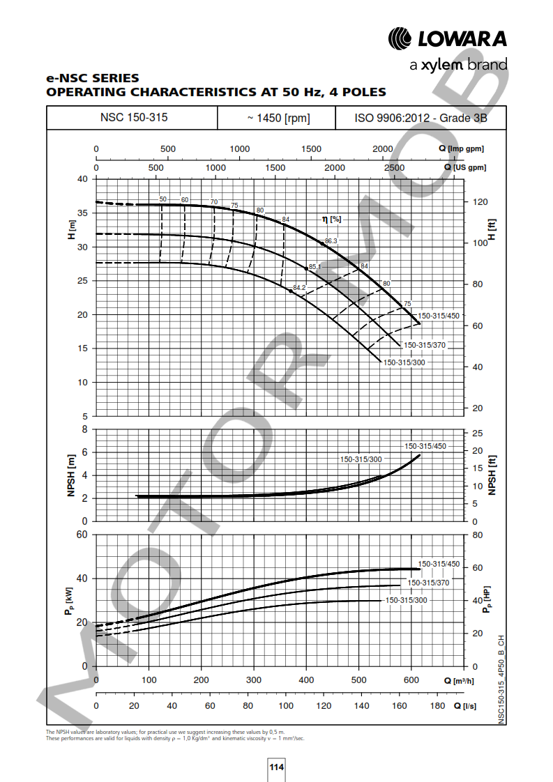BOMBA LOWARA NSCF 150-315/450/W45 VCC4 – HORIZONTAL DE ALTO RENDIMIENTO – TRIFASICA