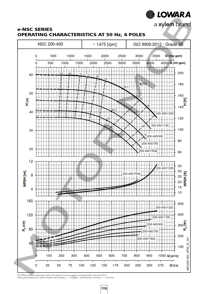 BOMBA LOWARA NSCF 200-400/1100/W45 VDC4 – HORIZONTAL DE ALTO RENDIMIENTO – TRIFASICA
