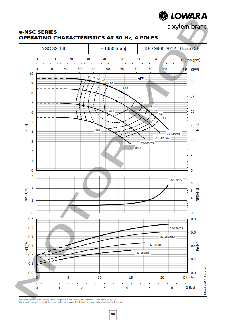 BOMBA LOWARA NSCF 32-160/02/S45 RCS4 – HORIZONTAL DE ALTO RENDIMIENTO – TRIFASICA