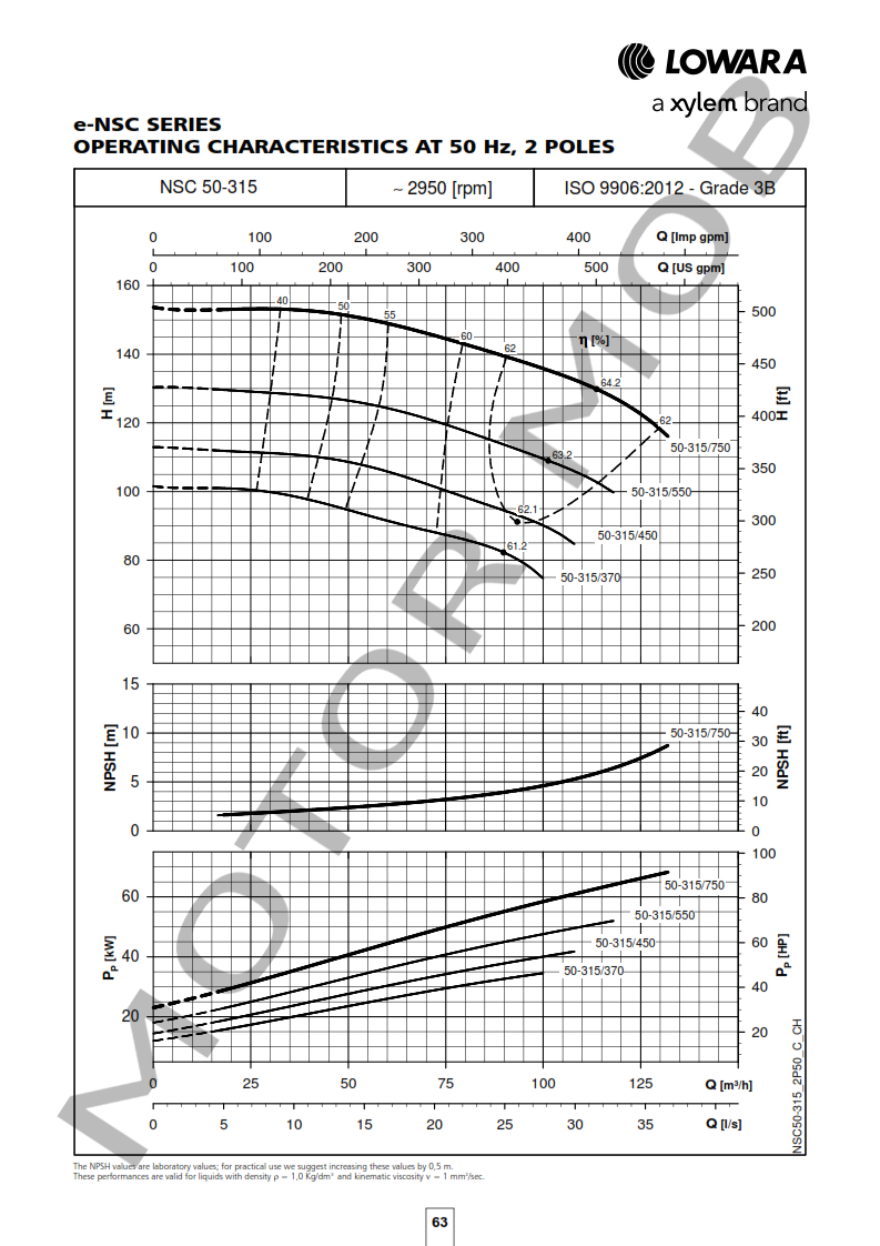 BOMBA LOWARA NSCF 50-315/450/W25 VCC4 – HORIZONTAL DE ALTO RENDIMIENTO – TRIFASICA