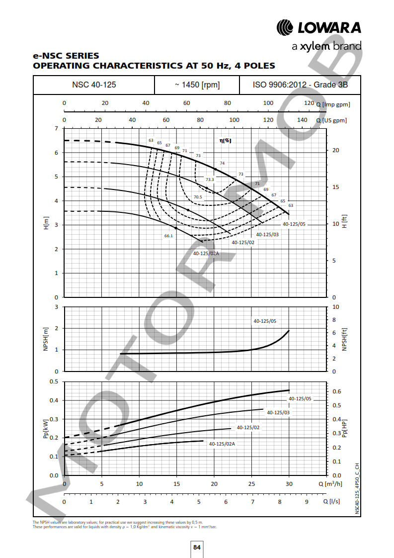 BOMBA LOWARA NSCS 40-125/05/S45 RCS4 – HORIZONTAL ALTO RENDIMIENTO – TRIFASICA