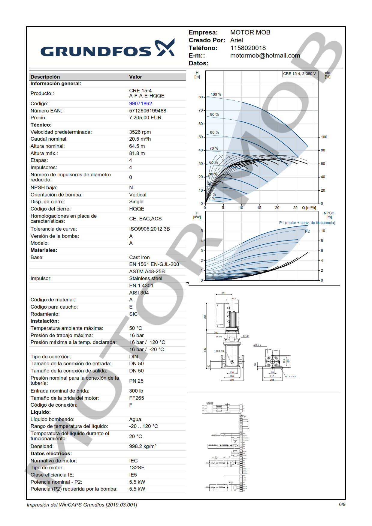 BOMBA MULTICELULAR VERTICAL CON VARIADOR DE VELOCIDAD INCORPORADO – GRUNDFOS – CRE 15-04 A-F-A-E-HQQE – 7.5 HP – TRIFASICA – ARTICULO 99071862