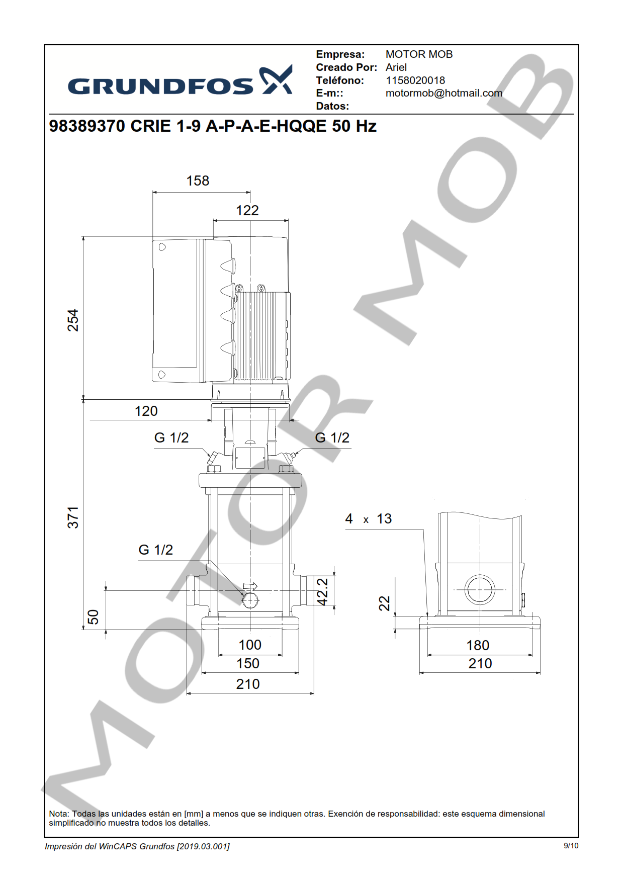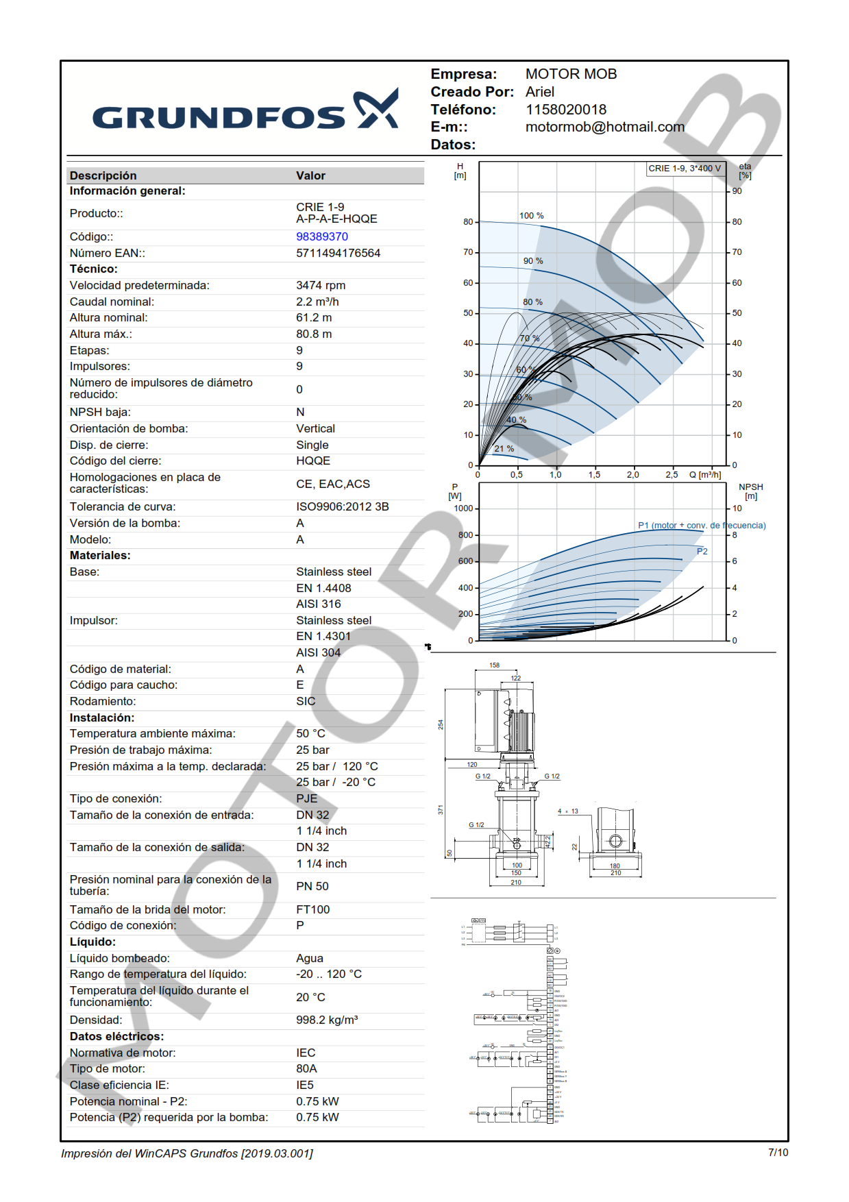 BOMBA MULTICELULAR VERTICAL CON VARIADOR DE VELOCIDAD INCORPORADO – GRUNDFOS – CRIE 1-9 A-P-I-E-HQQE – 1 HP – TRIFASICA – ARTICULO 98389370