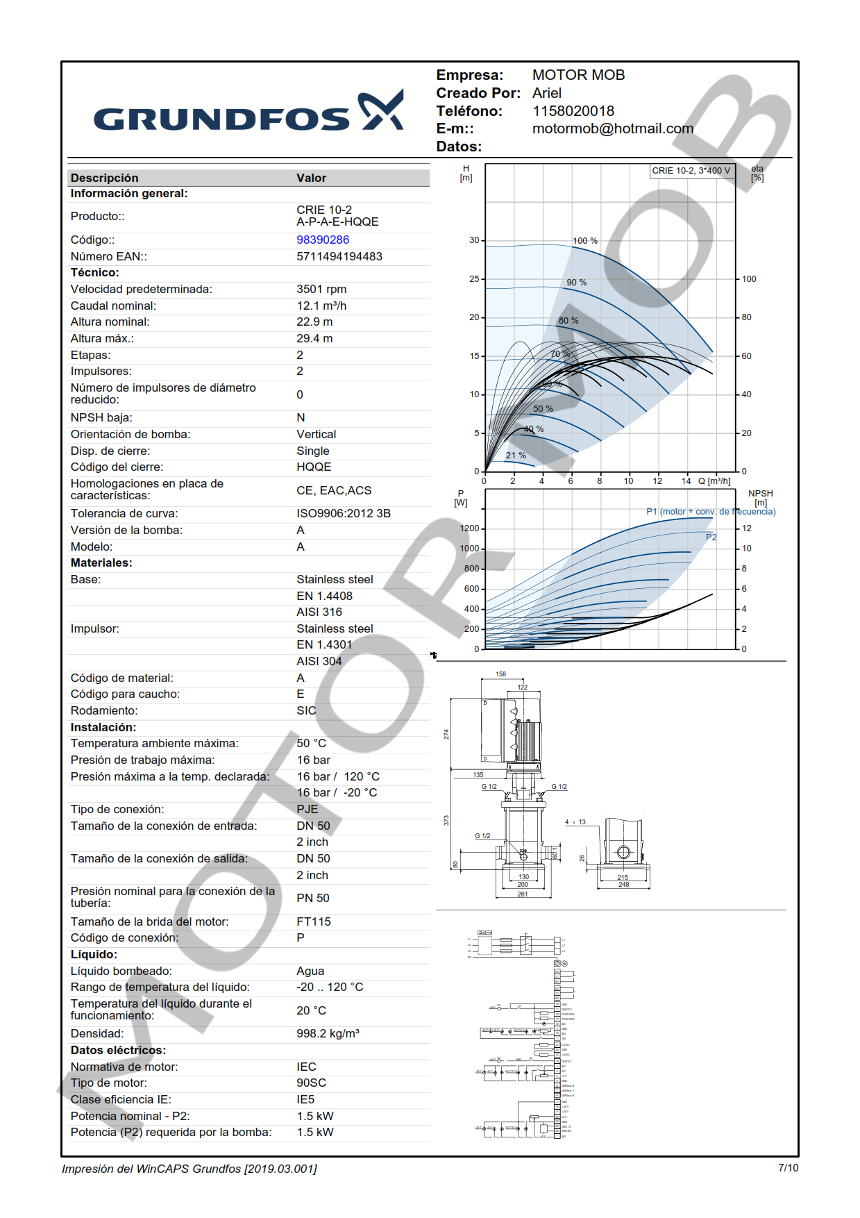 BOMBA MULTICELULAR VERTICAL CON VARIADOR DE VELOCIDAD INCORPORADO – GRUNDFOS – CRIE 10-02 A-P-I-E-HQQE – 2 HP – TRIFASICA – ARTICULO 98390286