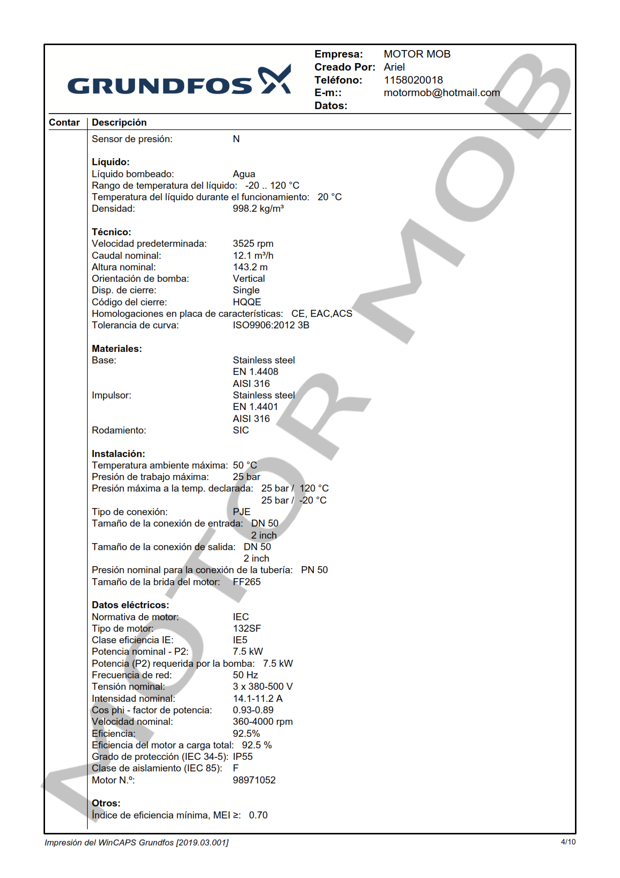 BOMBA MULTICELULAR VERTICAL CON VARIADOR DE VELOCIDAD INCORPORADO – GRUNDFOS – CRNE 10-12 A-P-G-E-HQQE – 10 HP – TRIFASICA – ARTICULO 99071820