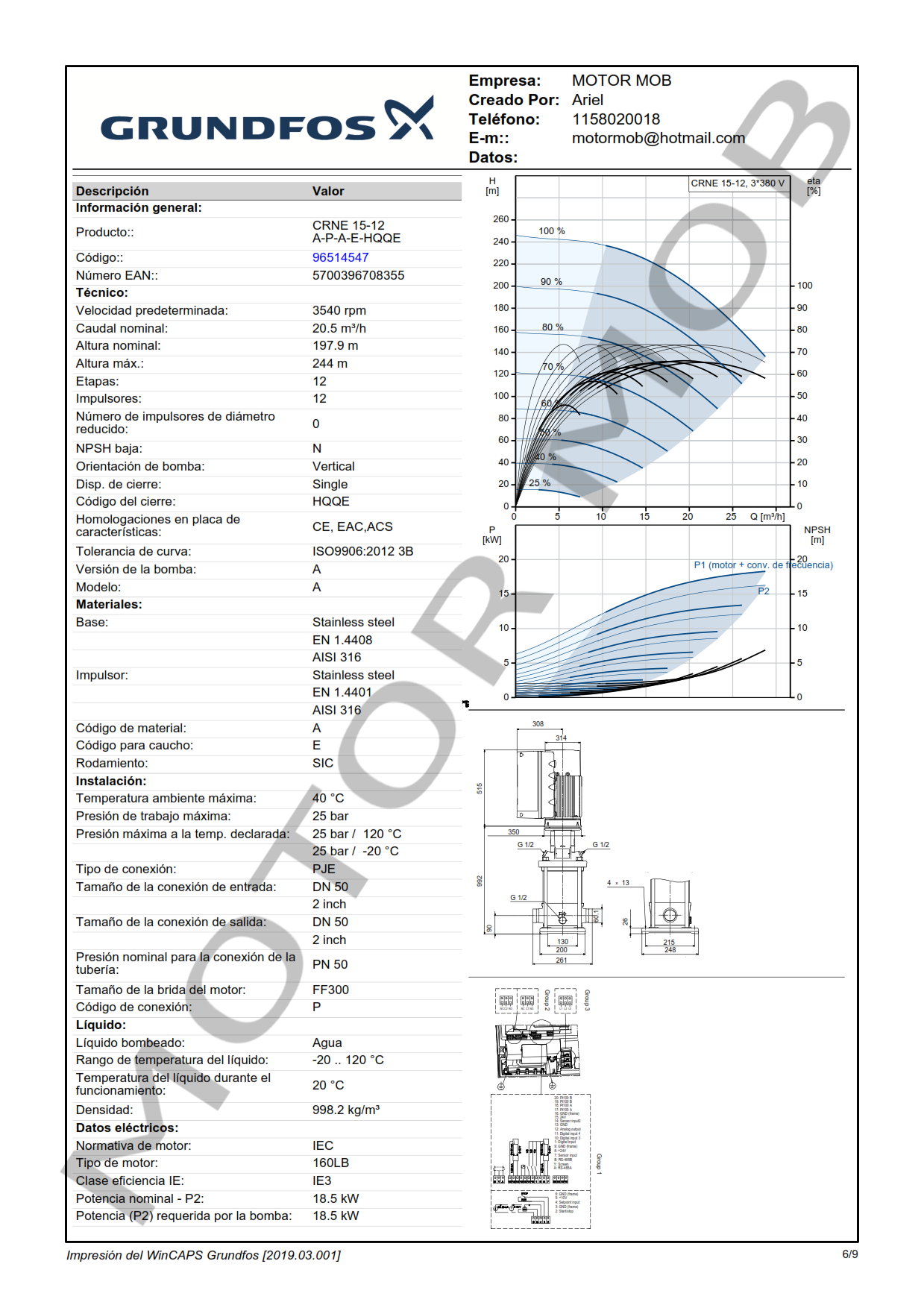 BOMBA MULTICELULAR VERTICAL CON VARIADOR DE VELOCIDAD INCORPORADO – GRUNDFOS – CRNE 15-12 A-P-G-E-HQQE – 25 HP – TRIFASICA – ARTICULO 96514547