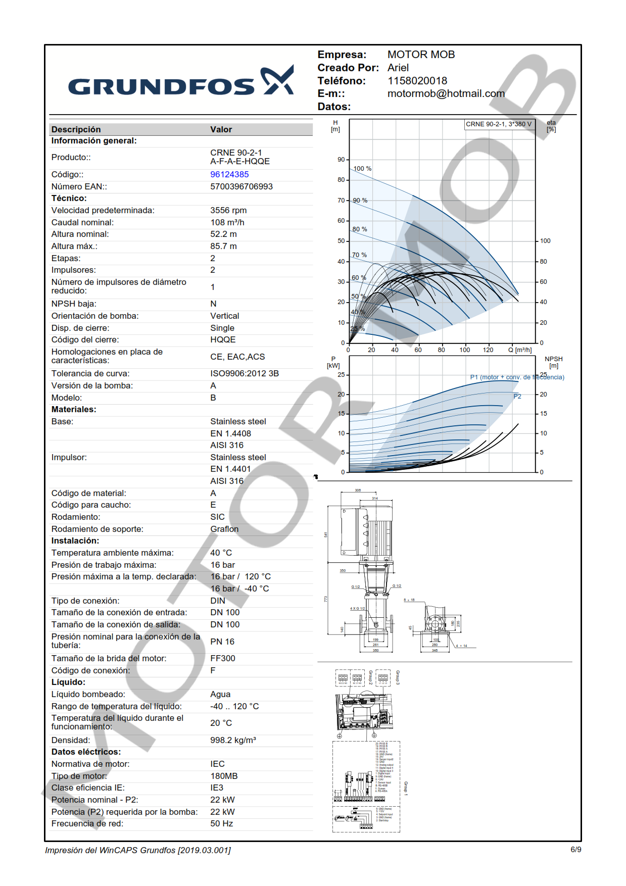 BOMBA MULTICELULAR VERTICAL CON VARIADOR DE VELOCIDAD INCORPORADO – GRUNDFOS – CRNE 90-2-1 A-F-G-E-HQQE – 30 HP – TRIFASICA – ARTICULO 96124385