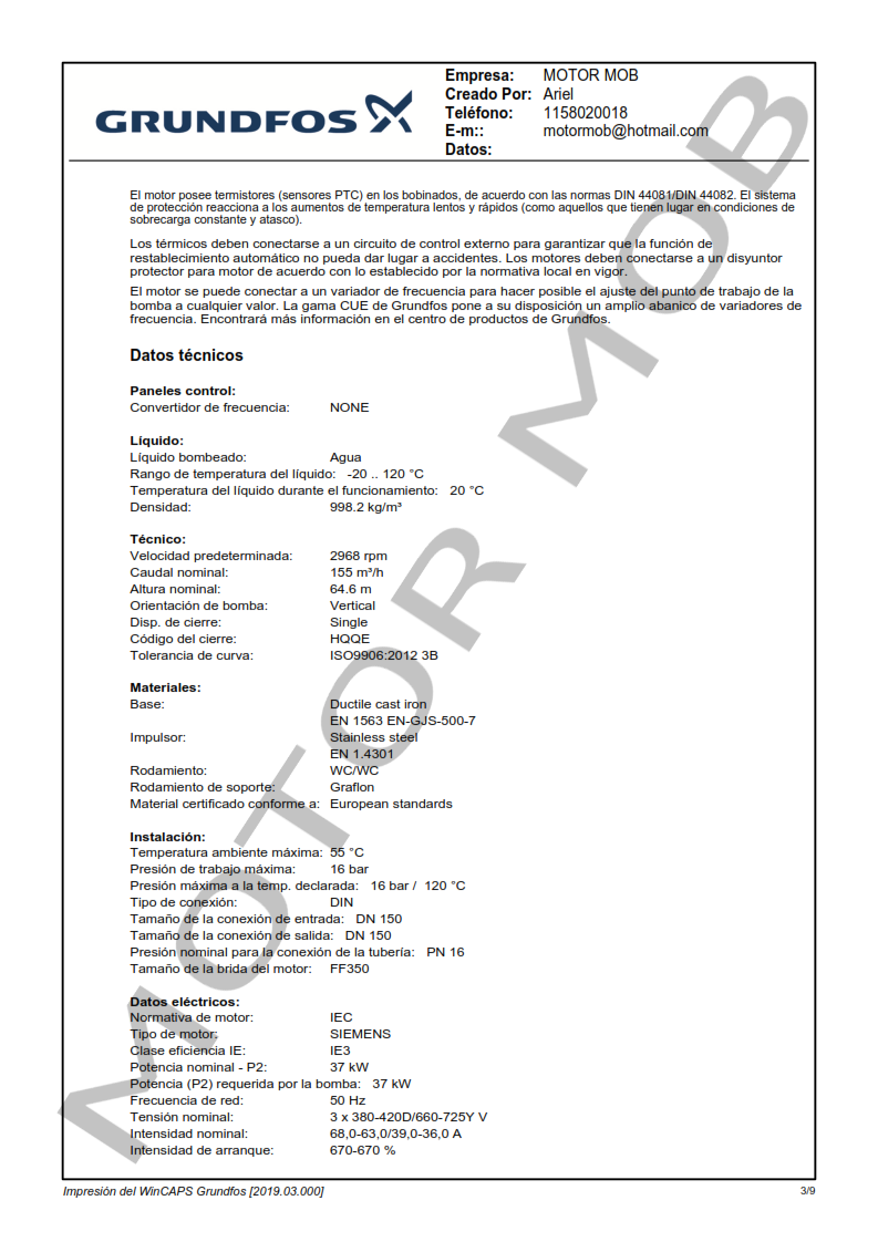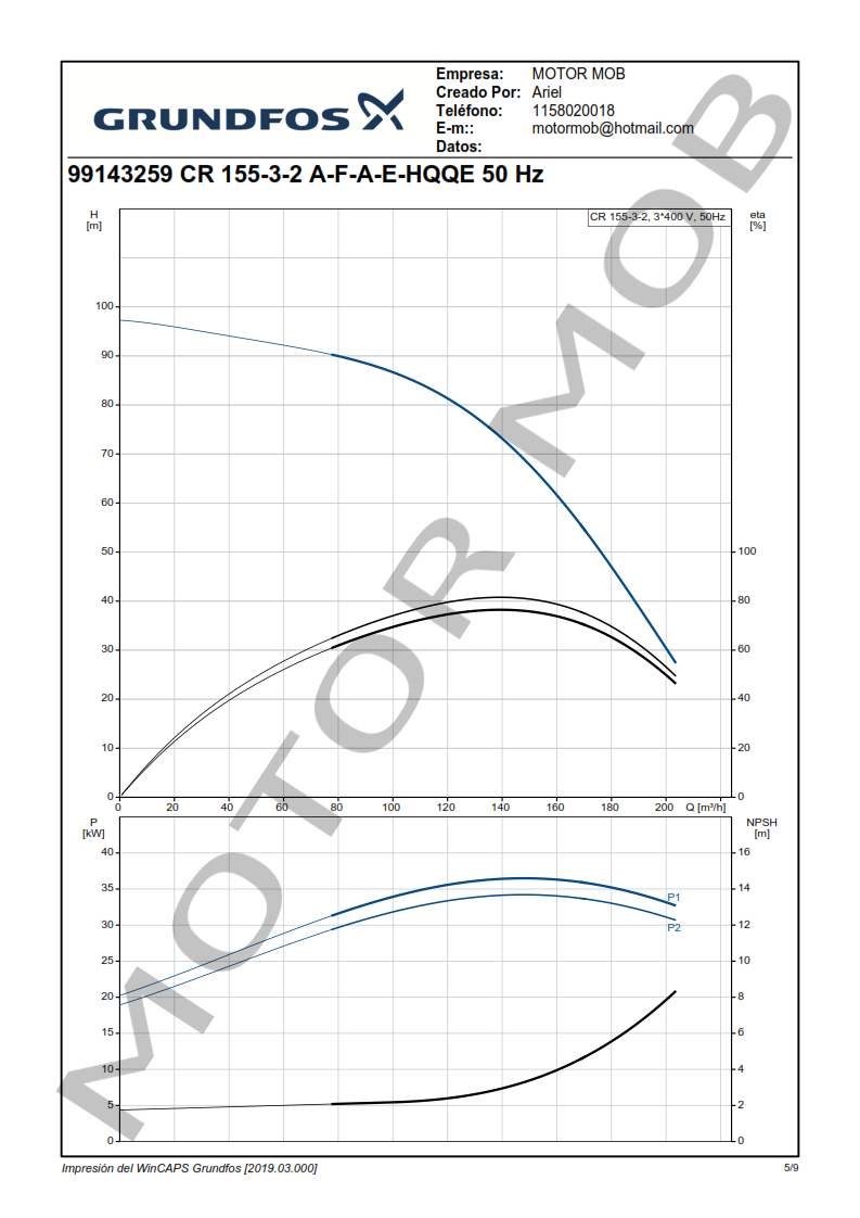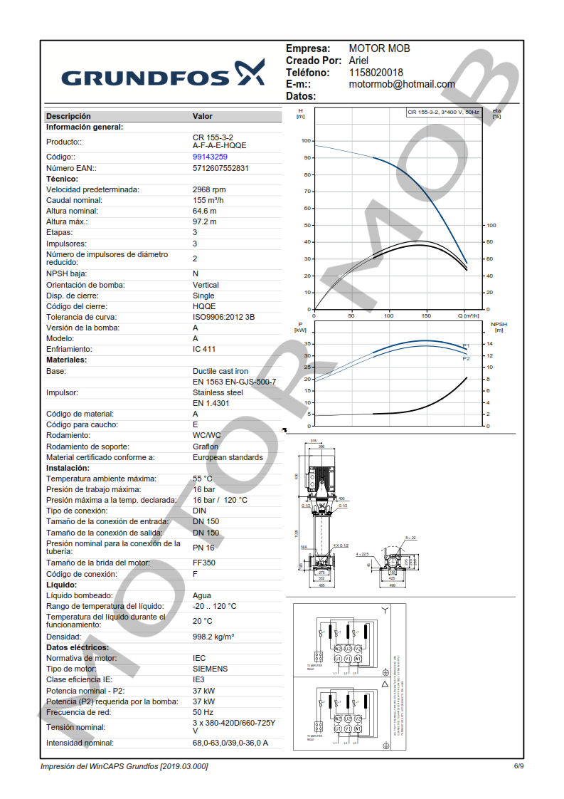 BOMBA MULTICELULAR VERTICAL – GRUNDFOS – CR 155-3-2 – 50 HP – TRIFASICA – ARTICULO 99143259