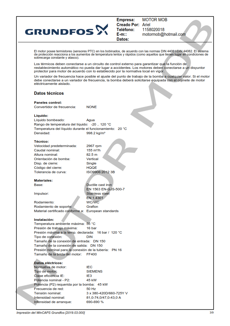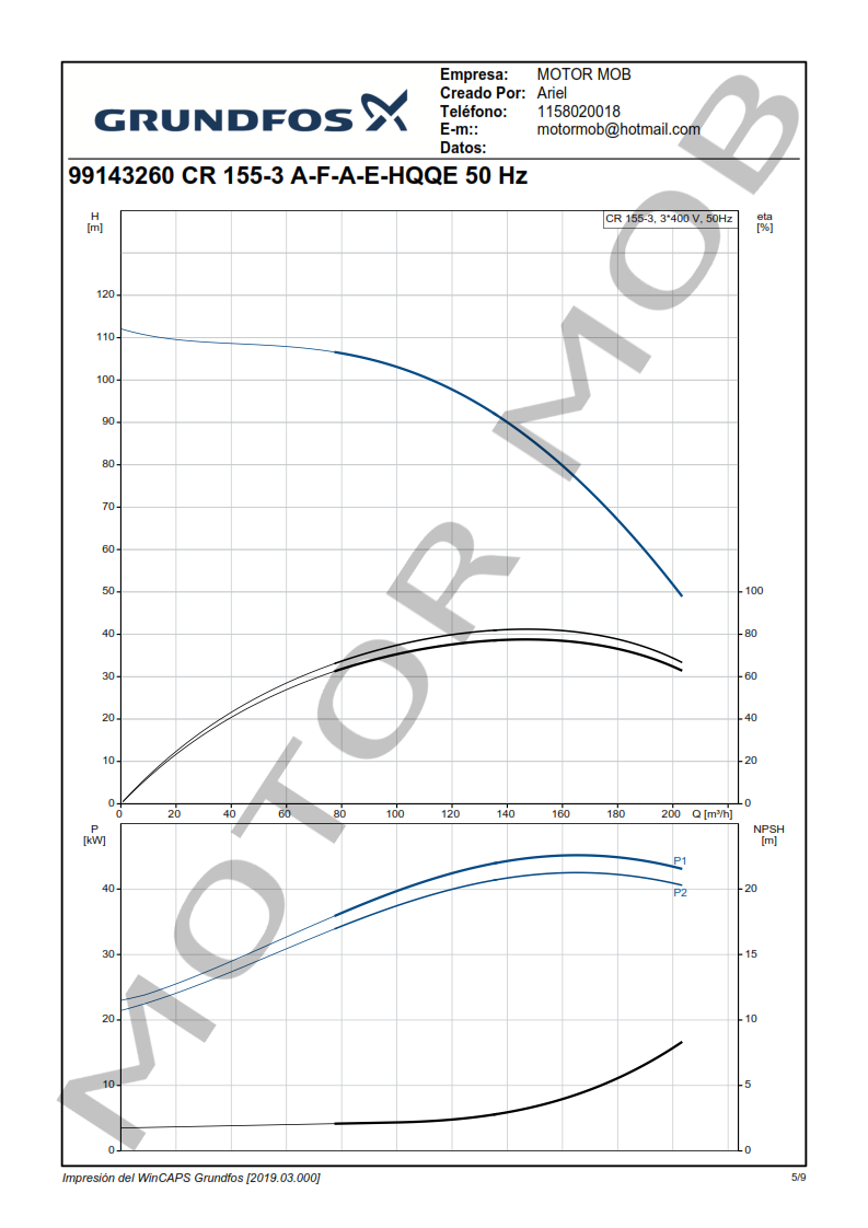 BOMBA MULTICELULAR VERTICAL – GRUNDFOS – CR 155-3 – 60 HP – TRIFASICA – ARTICULO 99143260