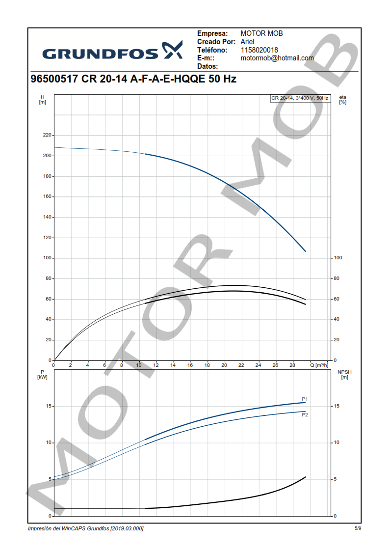 BOMBA MULTICELULAR VERTICAL – GRUNDFOS – CR 20-14 – 20 HP – TRIFASICA – ARTICULO 96500517