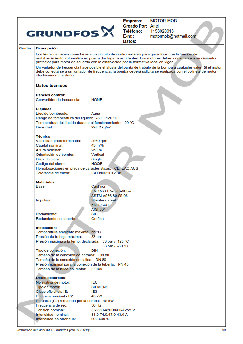 BOMBA MULTICELULAR VERTICAL – GRUNDFOS – CR 45-12 – 60 HP – TRIFASICA – ARTICULO 96122819