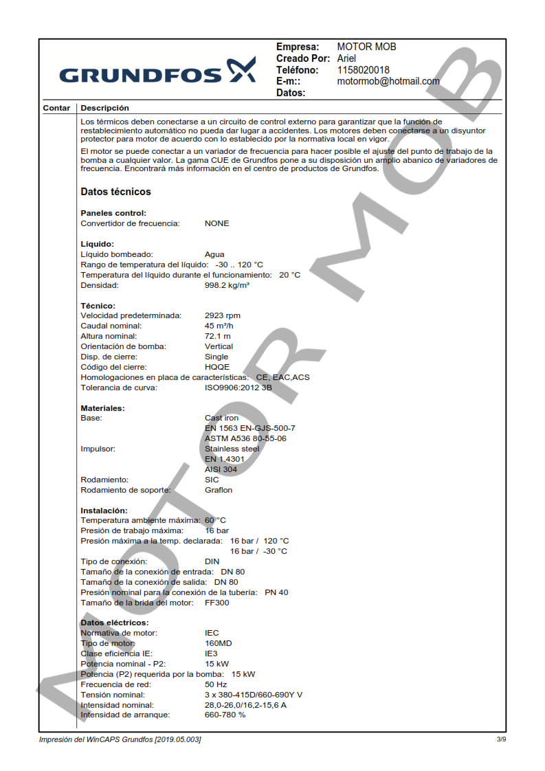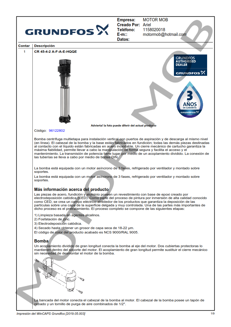 BOMBA MULTICELULAR VERTICAL – GRUNDFOS – CR 45-4-2 – 20 HP – TRIFASICA – ARTICULO 96122802