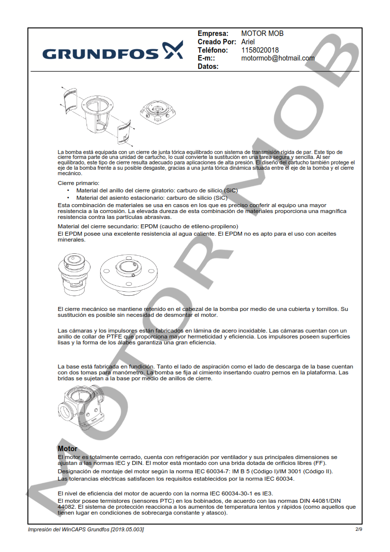 - Consultar por otros materiales (ej. carburo de tungsteno, vitón, kalrez, fluoraz sellos mecánicos dobles, etc.)