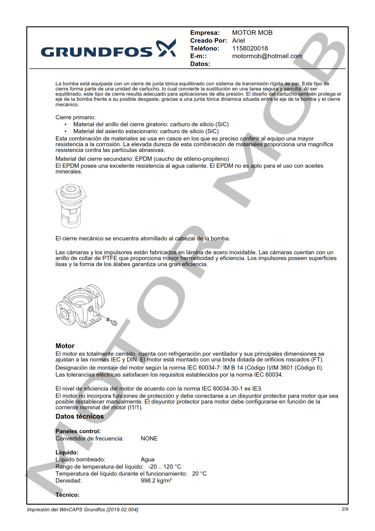 - Consultar por otros materiales (ej. carburo de tungsteno, vitón, kalrez, fluoraz sellos mecánicos dobles, etc.)