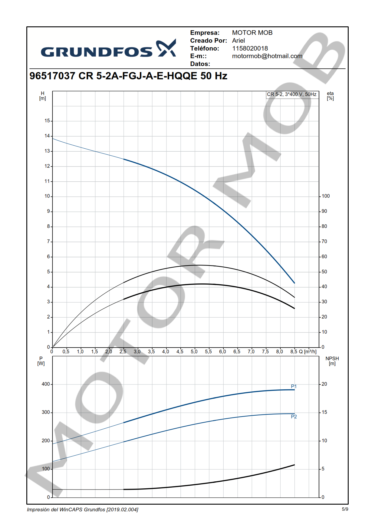 BOMBA MULTICELULAR VERTICAL – GRUNDFOS – CR 5-2 – 0.5 HP – TRIFASICA – ARTICULO 96517037