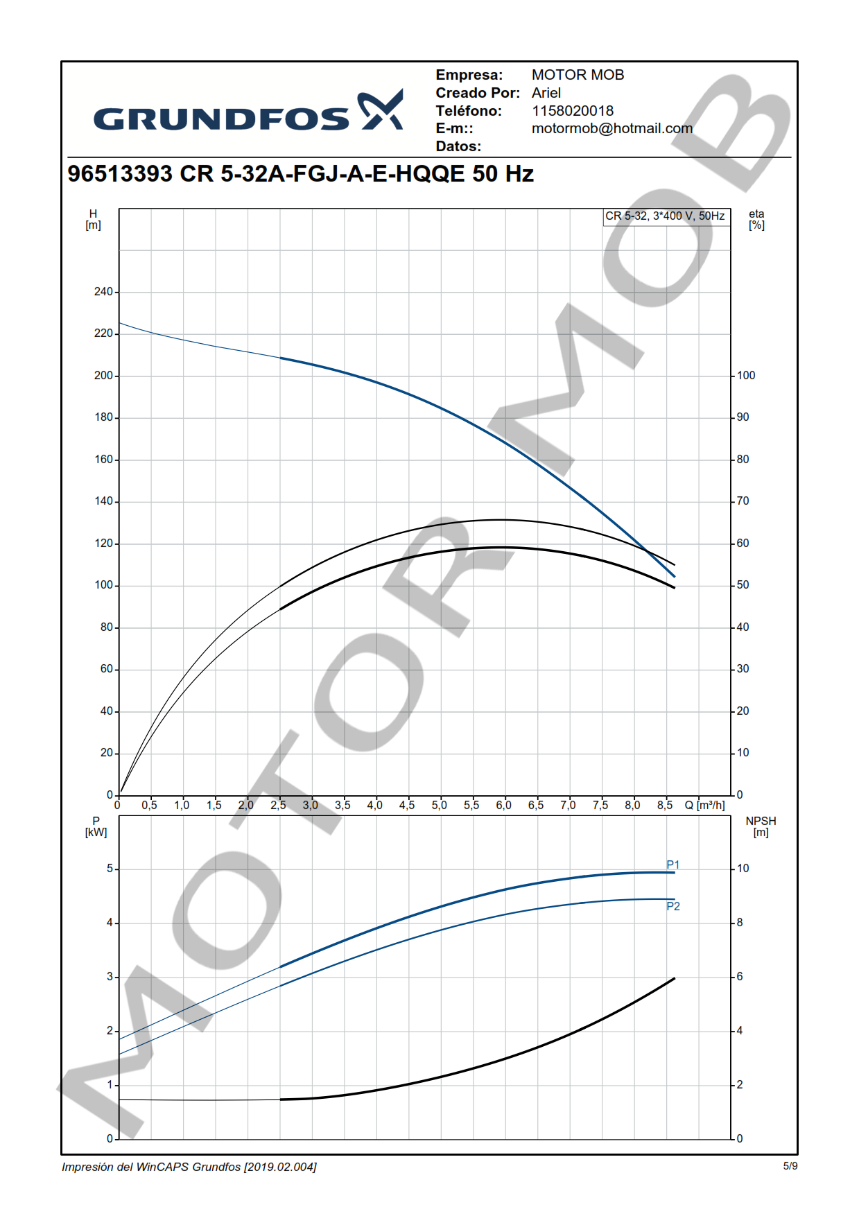 BOMBA MULTICELULAR VERTICAL – GRUNDFOS – CR 5-32 – 7.5 HP – TRIFASICA – ARTICULO 96513393