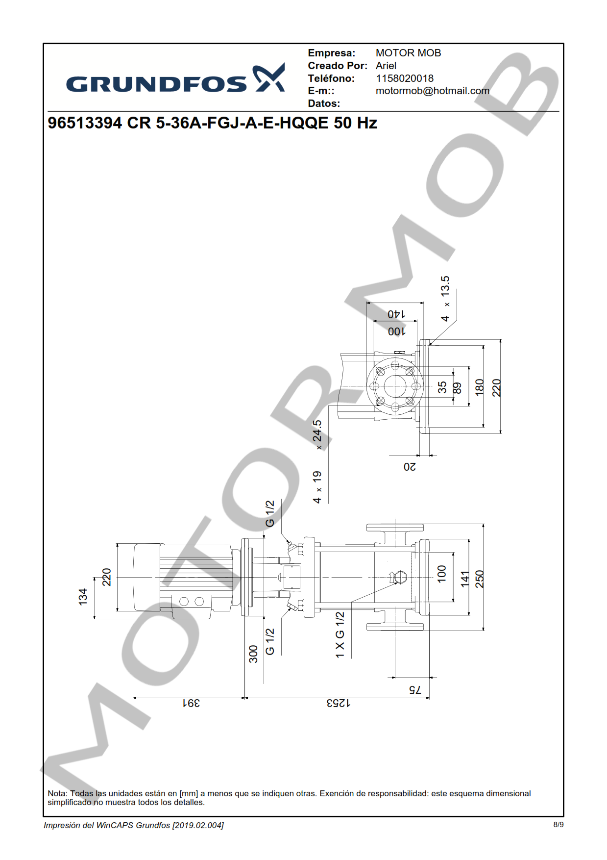 BOMBA MULTICELULAR VERTICAL – GRUNDFOS – CR 5-36 – 7.5 HP – TRIFASICA – ARTICULO 96513394