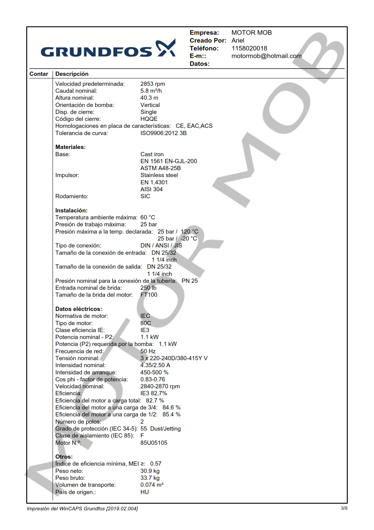 - Consultar por otros materiales (ej. carburo de tungsteno, vitón, kalrez, fluoraz sellos mecánicos dobles, etc.)