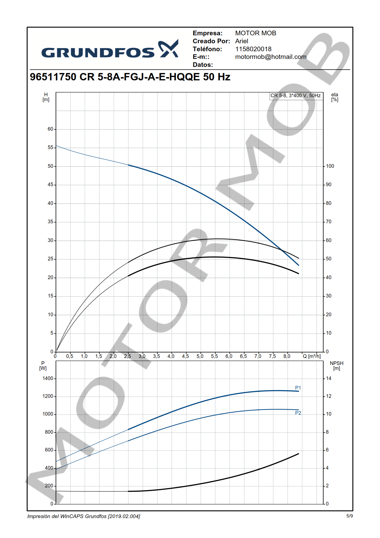 BOMBA MULTICELULAR VERTICAL – GRUNDFOS – CR 5-8 – 1.5 HP – TRIFASICA – ARTICULO 96511750