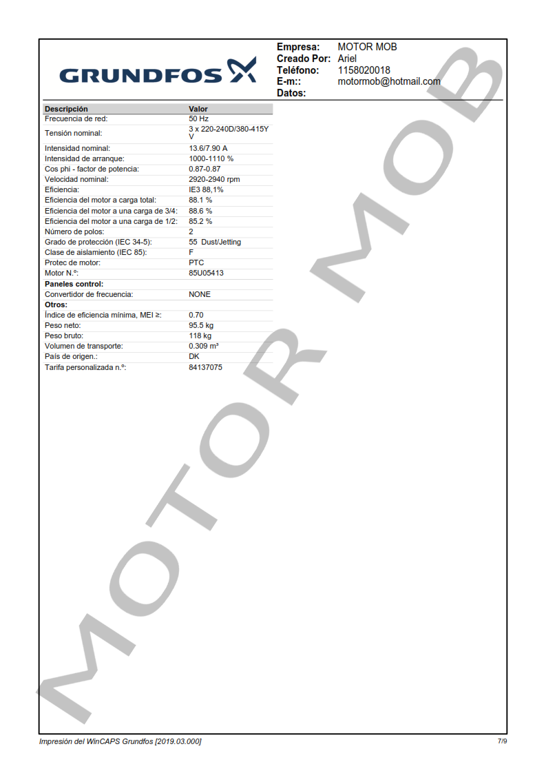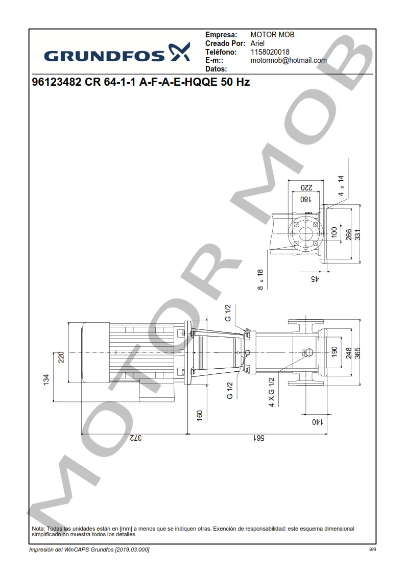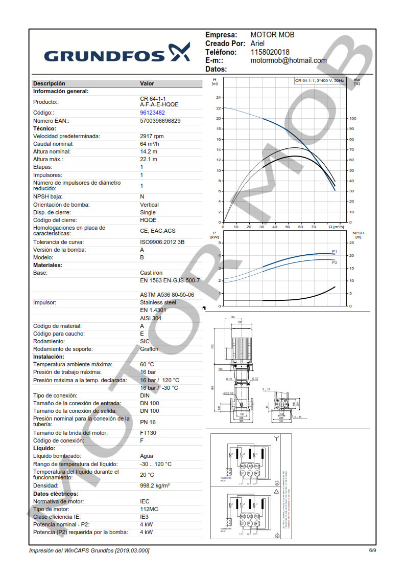 BOMBA MULTICELULAR VERTICAL – GRUNDFOS – CR 64-1-1 – 5 HP – TRIFASICA – ARTICULO 96123482