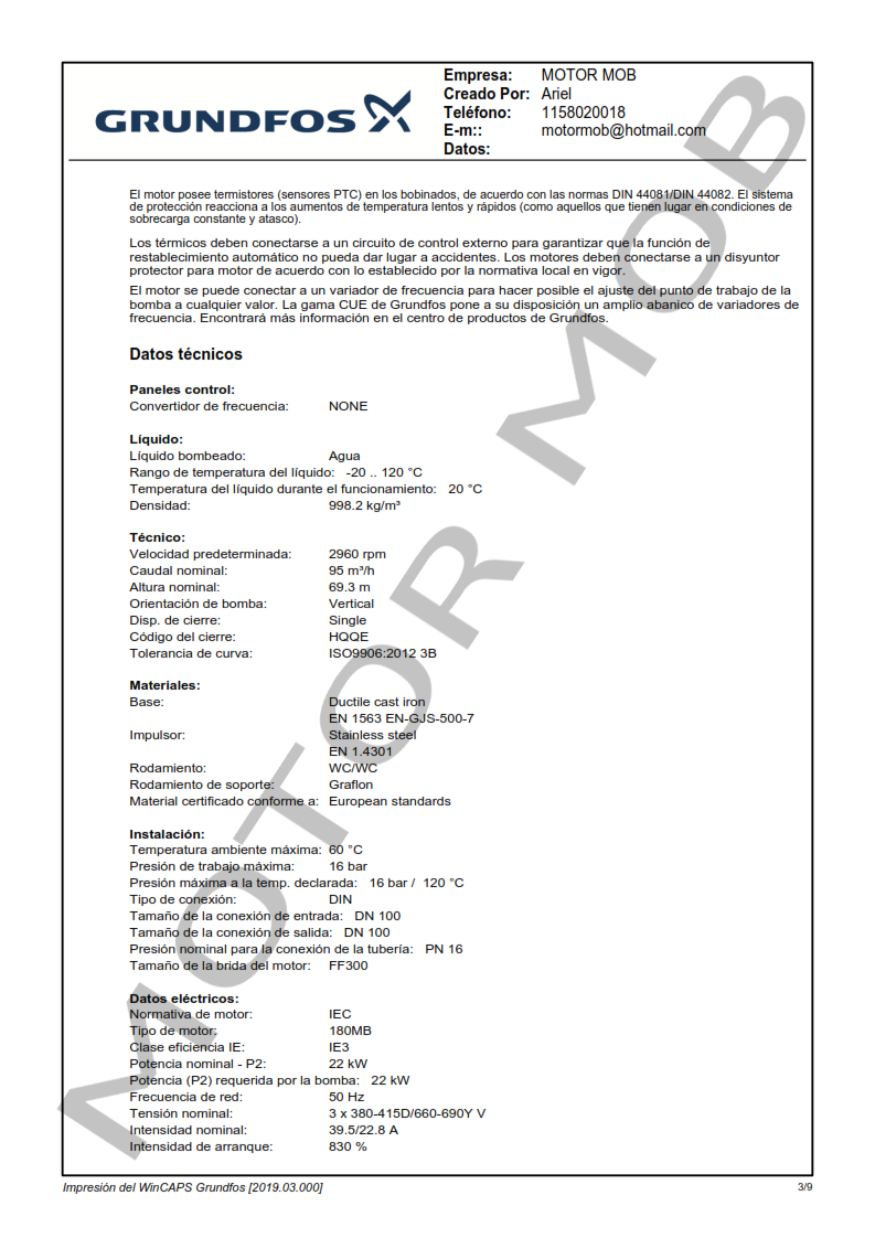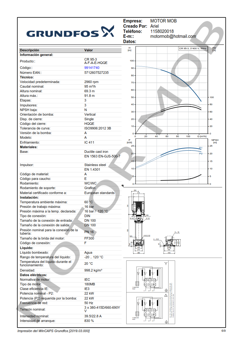 BOMBA MULTICELULAR VERTICAL – GRUNDFOS – CR 95-3 – 30 HP – TRIFASICA – ARTICULO 99141740
