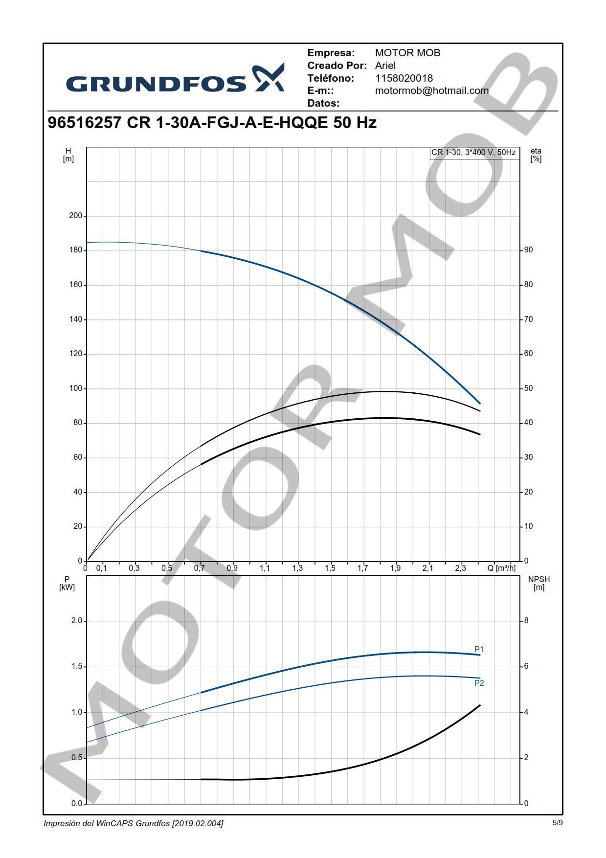 BOMBA MULTICELULAR VERTICAL – GRUNDFOS – CR 1-30 – 2 HP – TRIFASICA – ARTICULO 96516257