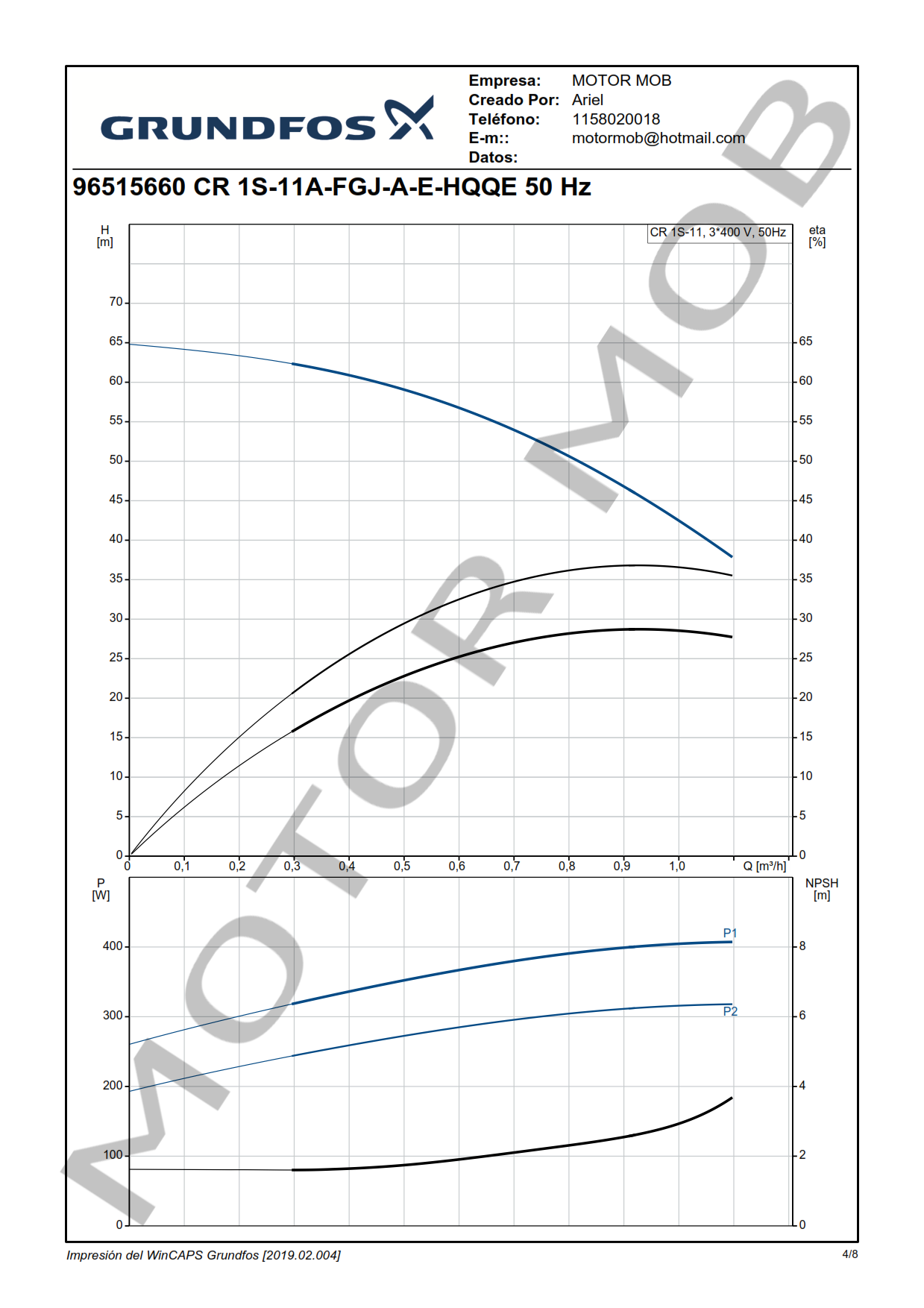BOMBA MULTICELULAR VERTICAL – GRUNDFOS – CR 1S-11 – 0.5 HP – TRIFASICA – ARTICULO 96515660