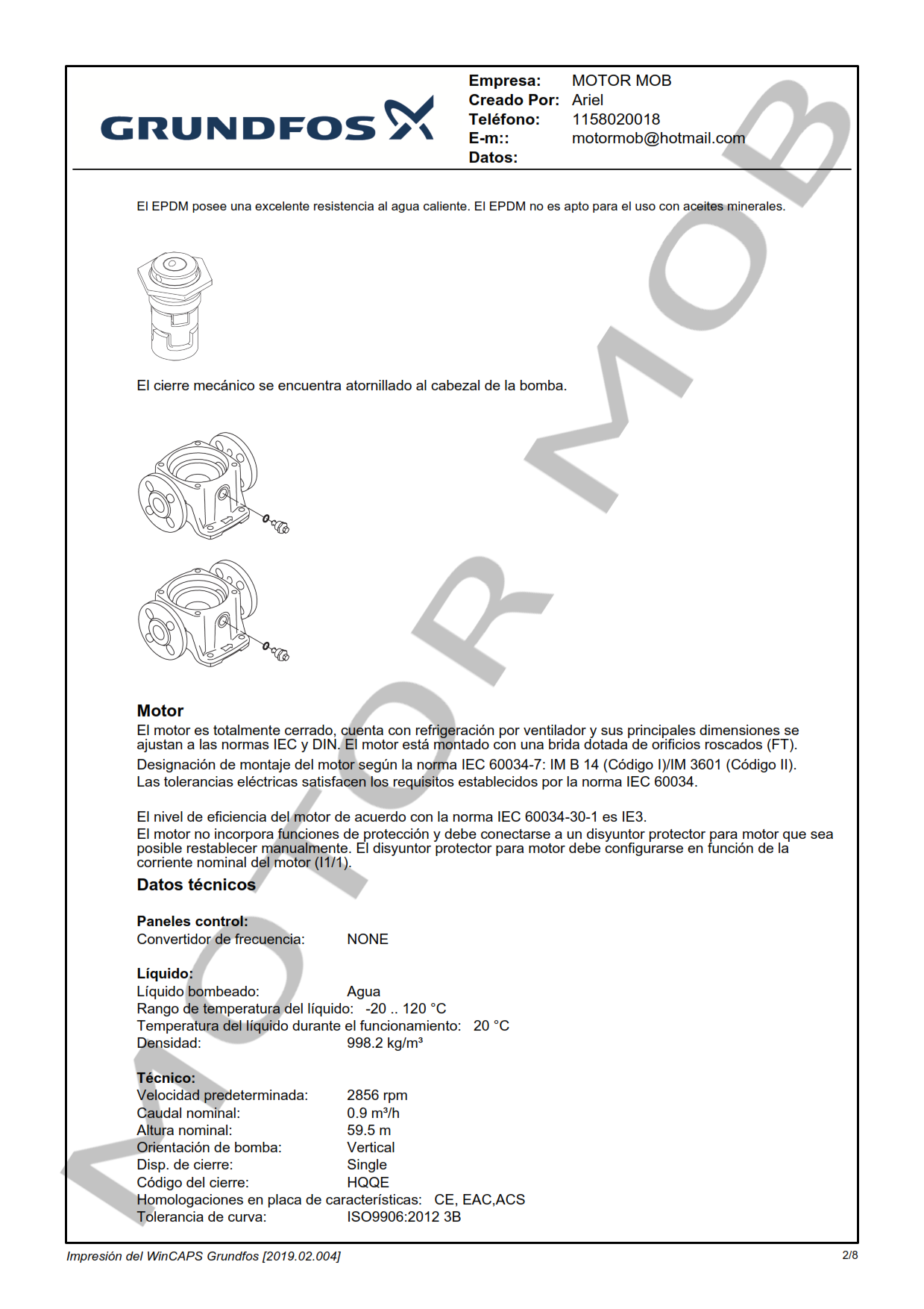 - Consultar por otros materiales (ej. carburo de tungsteno, vitón, kalrez, fluoraz sellos mecánicos dobles, etc.)