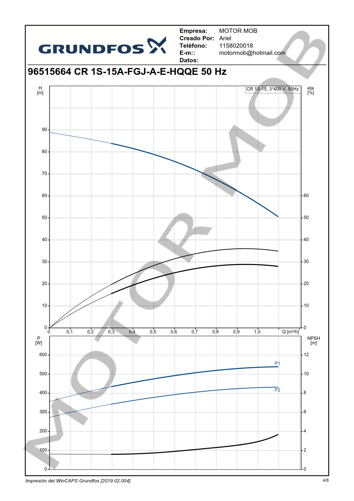 BOMBA MULTICELULAR VERTICAL – GRUNDFOS – CR 1S-15 – 0.75 HP – TRIFASICA – ARTICULO 96515664