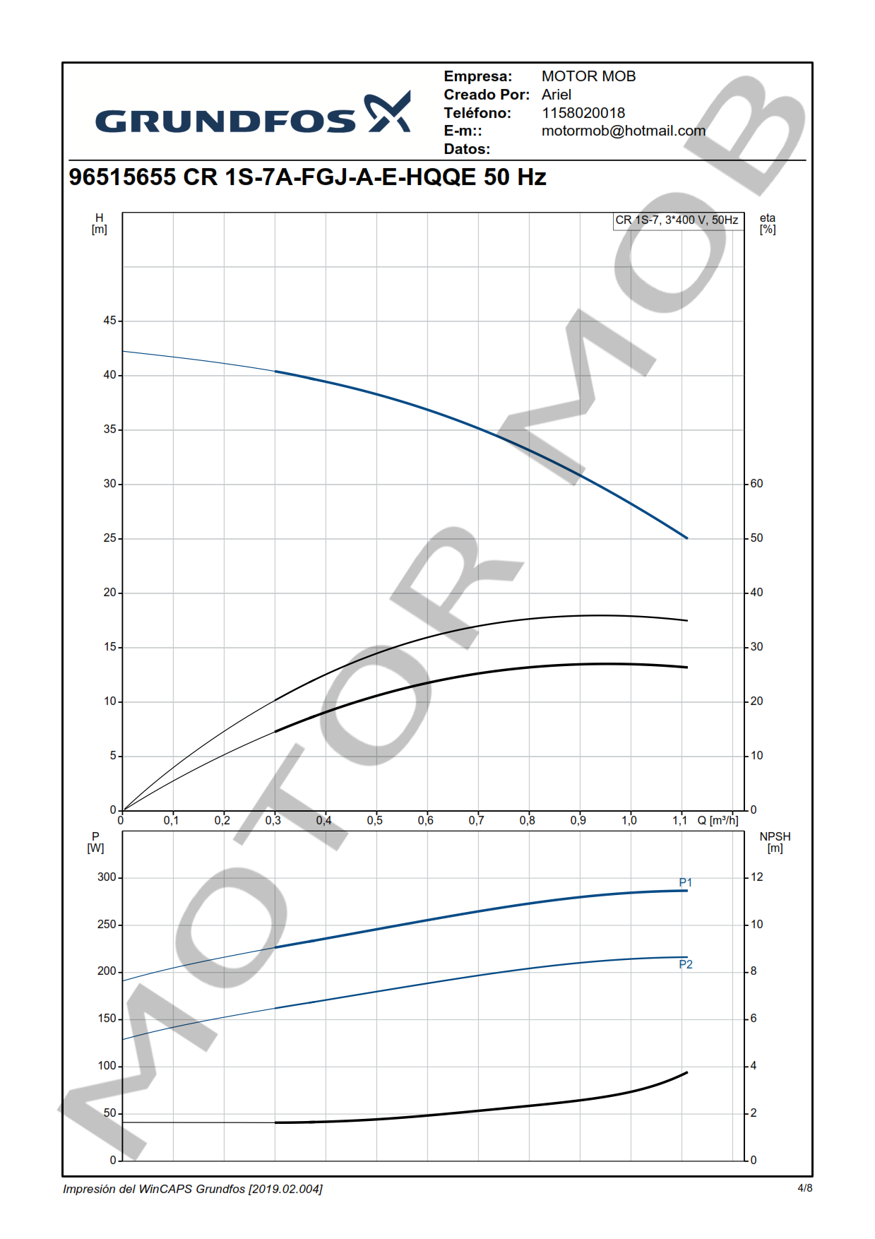 BOMBA MULTICELULAR VERTICAL – GRUNDFOS – CR 1S-7 – 0.5 HP – TRIFASICA – ARTICULO 96515655