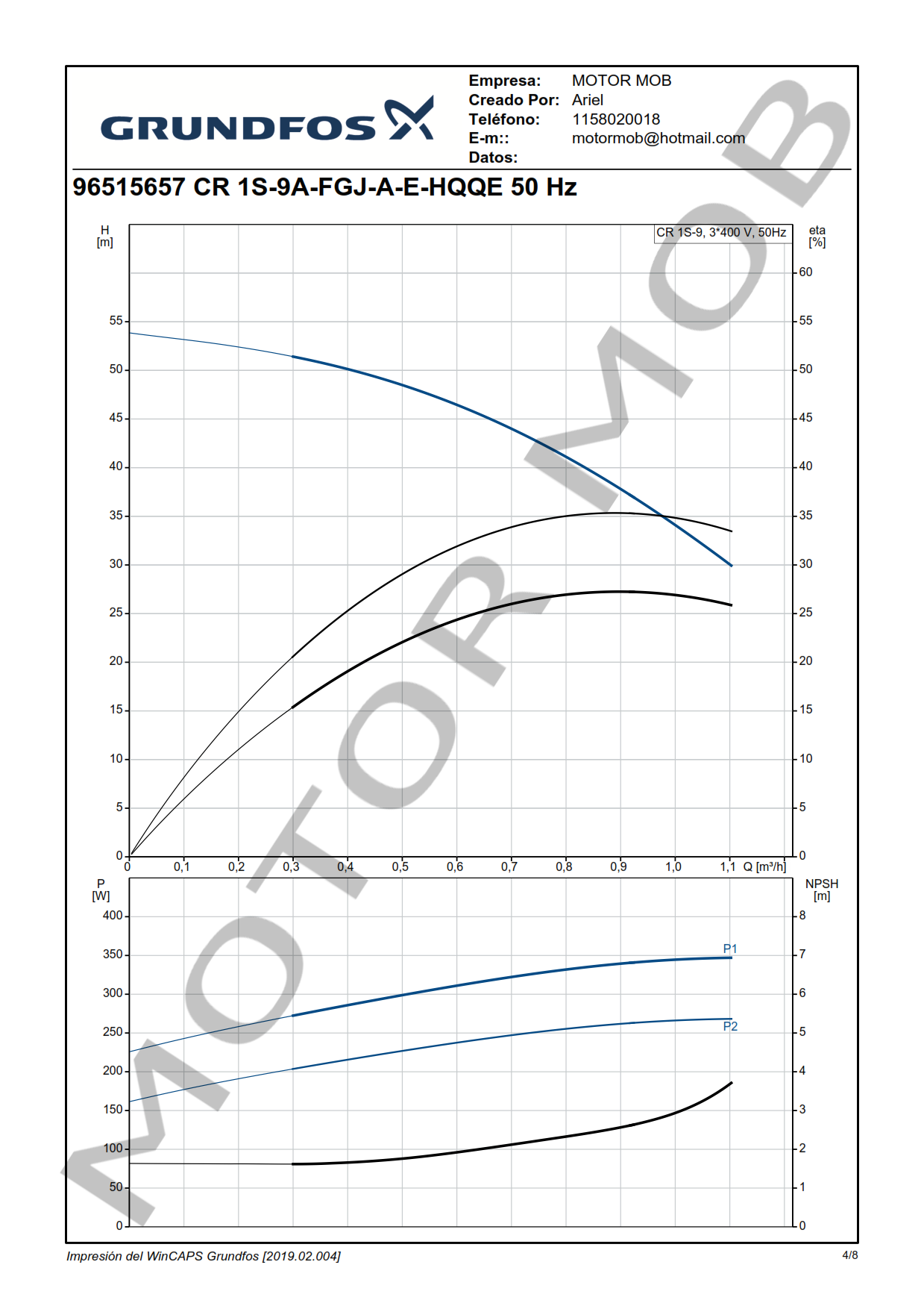 BOMBA MULTICELULAR VERTICAL – GRUNDFOS – CR 1S-9 – 0.5 HP – TRIFASICA – ARTICULO 96515657