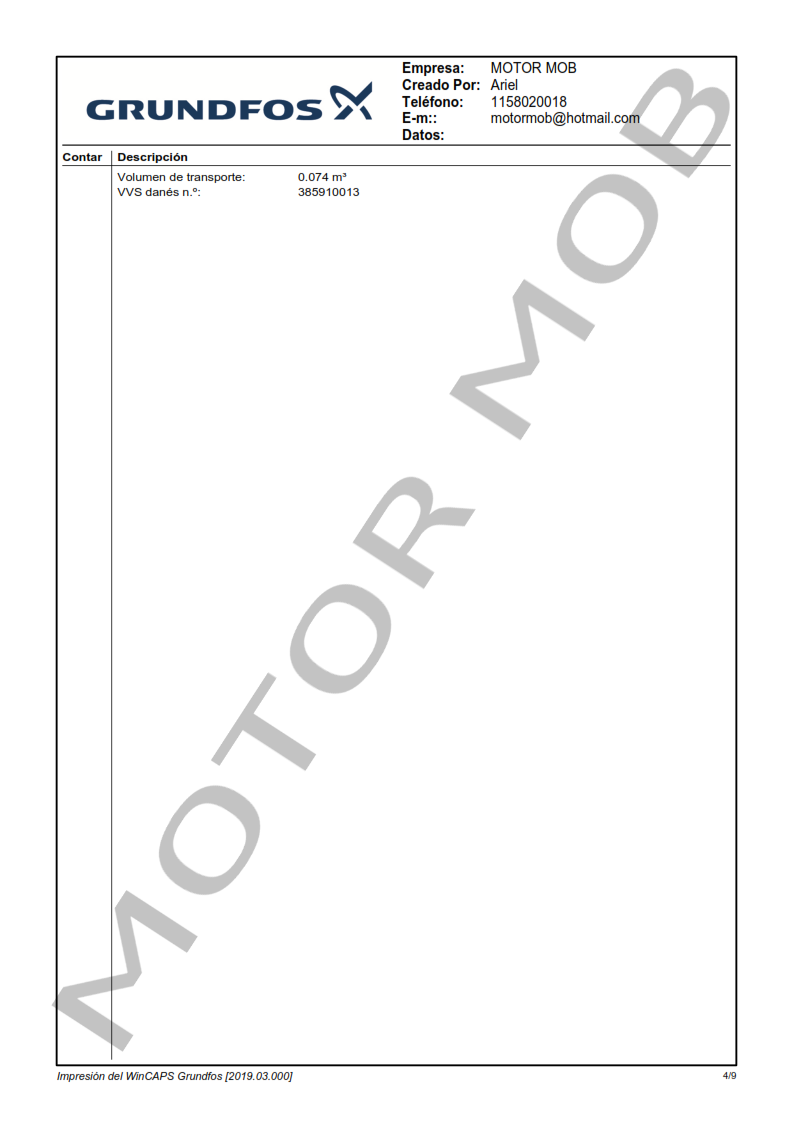 La bomba está equipada con un motor asíncrono de 3 fases, refrigerado por ventilador y montado sobre soportes.