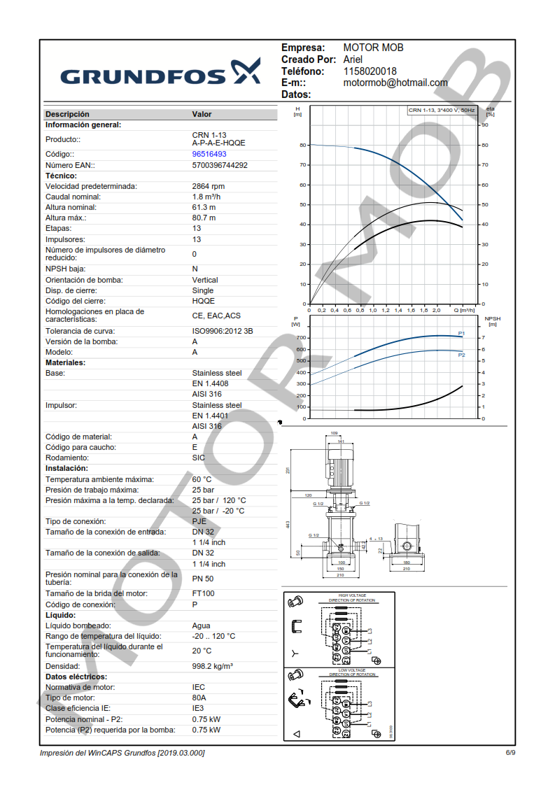 BOMBA MULTICELULAR VERTICAL – GRUNDFOS – CRN 1-13 – 1 HP – TRIFASICA – ARTICULO 96516493