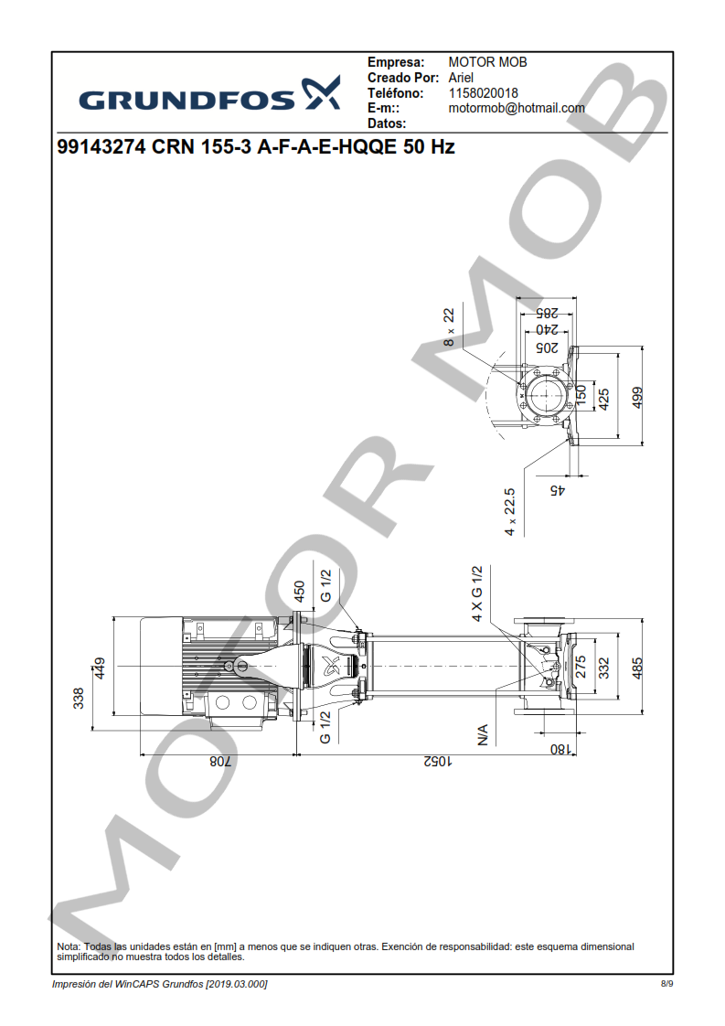 BOMBA MULTICELULAR VERTICAL – GRUNDFOS – CRN 155-3 – 60 HP – TRIFASICA – ARTICULO 99143274