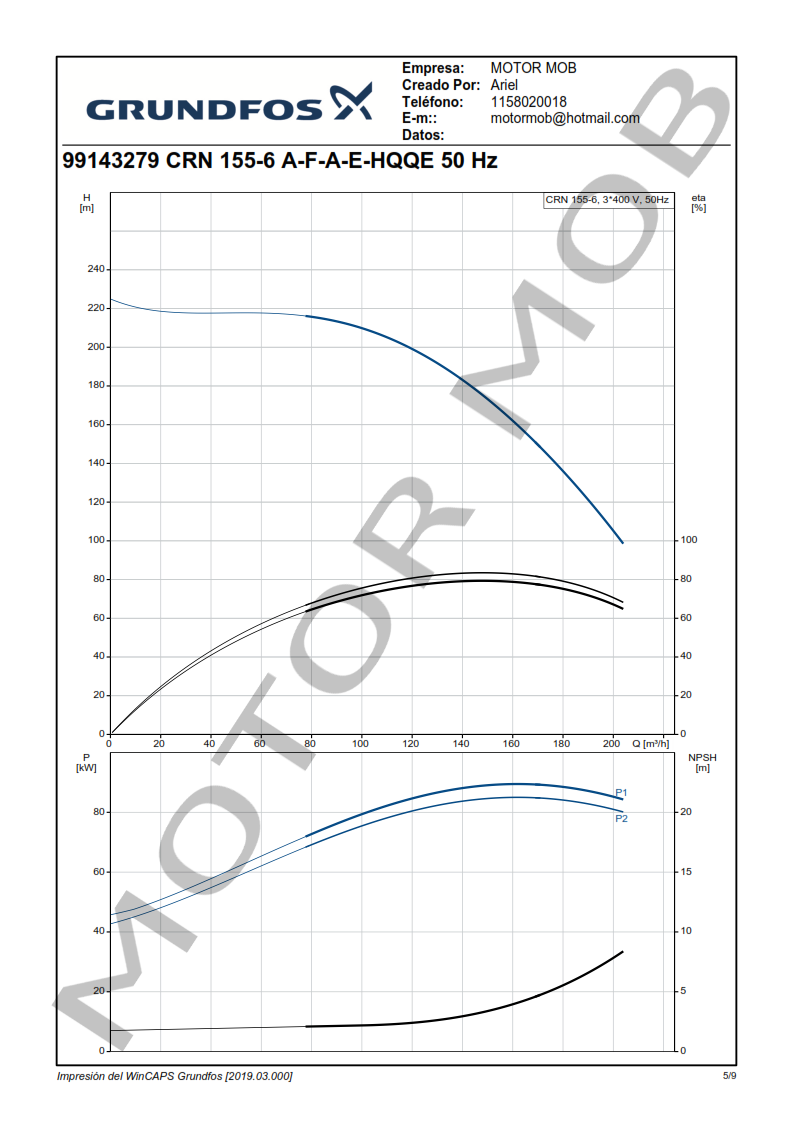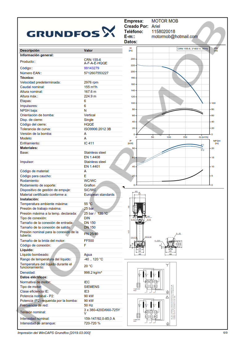 BOMBA MULTICELULAR VERTICAL – GRUNDFOS – CRN 155-6 – 120 HP – TRIFASICA – ARTICULO 99143279