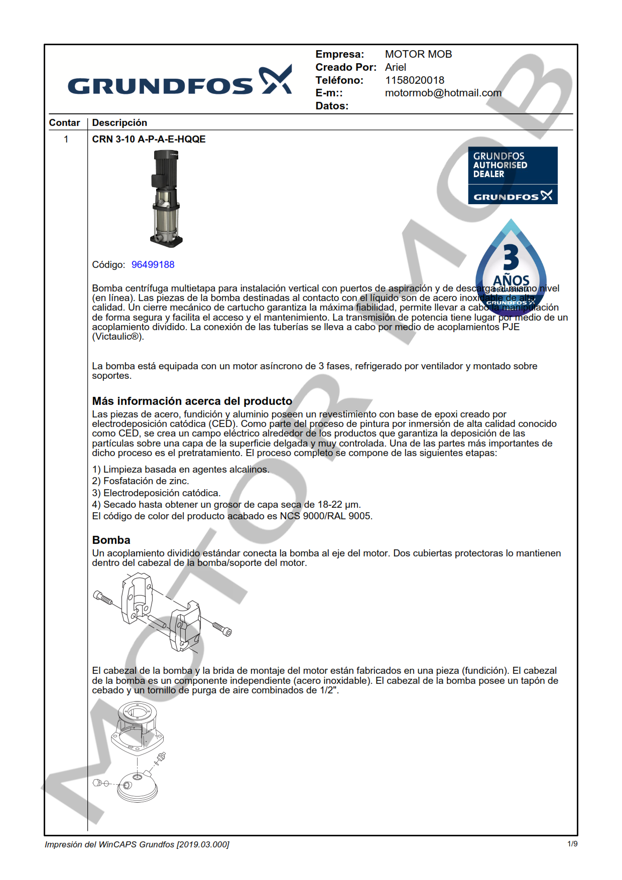 BOMBA MULTICELULAR VERTICAL – GRUNDFOS – CRN 3-10 – 1 HP – TRIFASICA – ARTICULO 96499188
