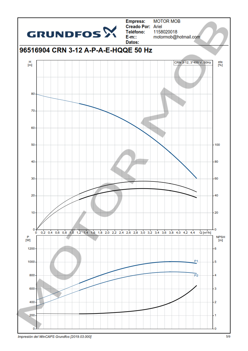 BOMBA MULTICELULAR VERTICAL – GRUNDFOS – CRN 3-12 – 1.5 HP – TRIFASICA – ARTICULO 96516904