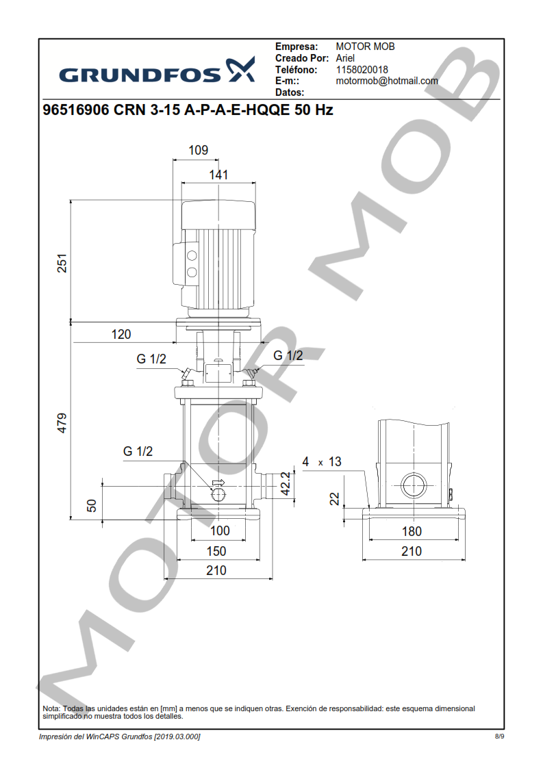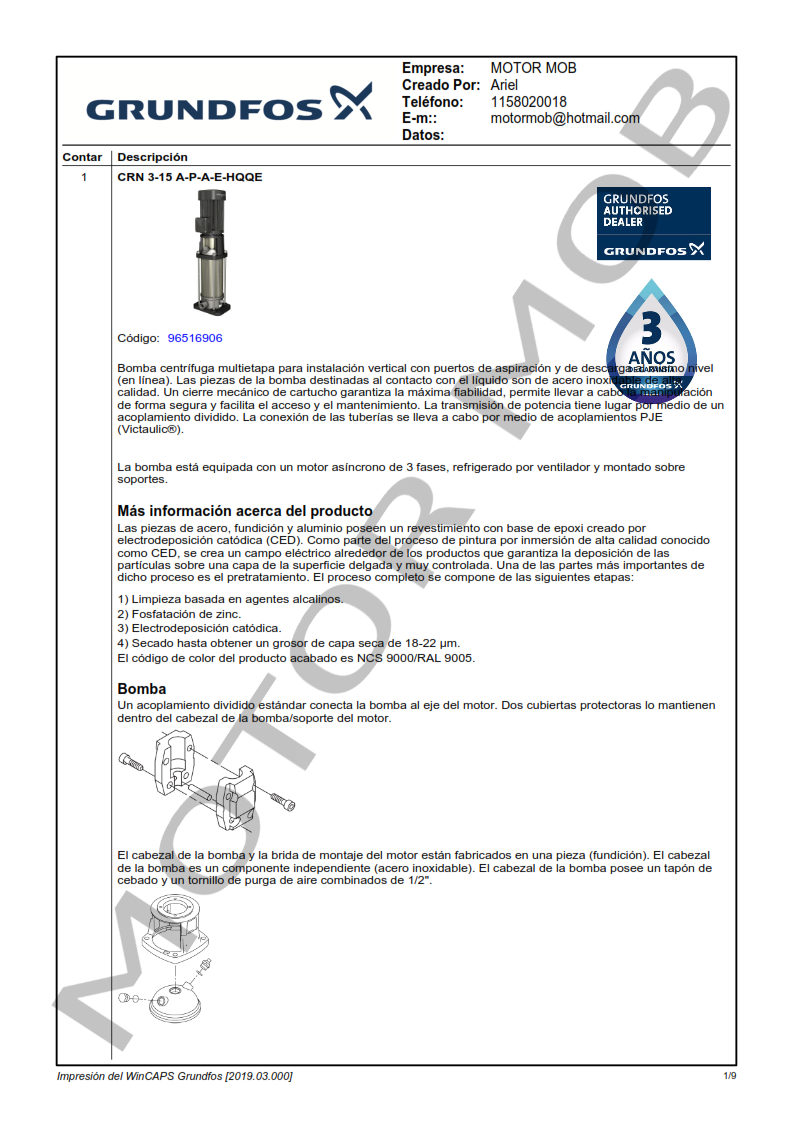 BOMBA MULTICELULAR VERTICAL – GRUNDFOS – CRN 3-15 – 1.5 HP – TRIFASICA – ARTICULO 96516906