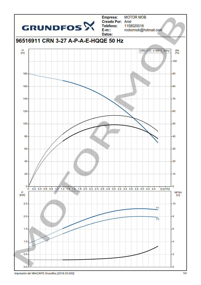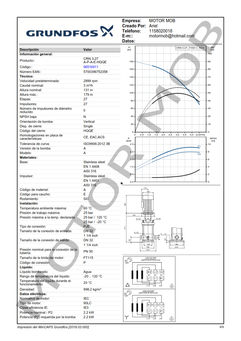 BOMBA MULTICELULAR VERTICAL – GRUNDFOS – CRN 3-27 – 3 HP – TRIFASICA – ARTICULO 96516911