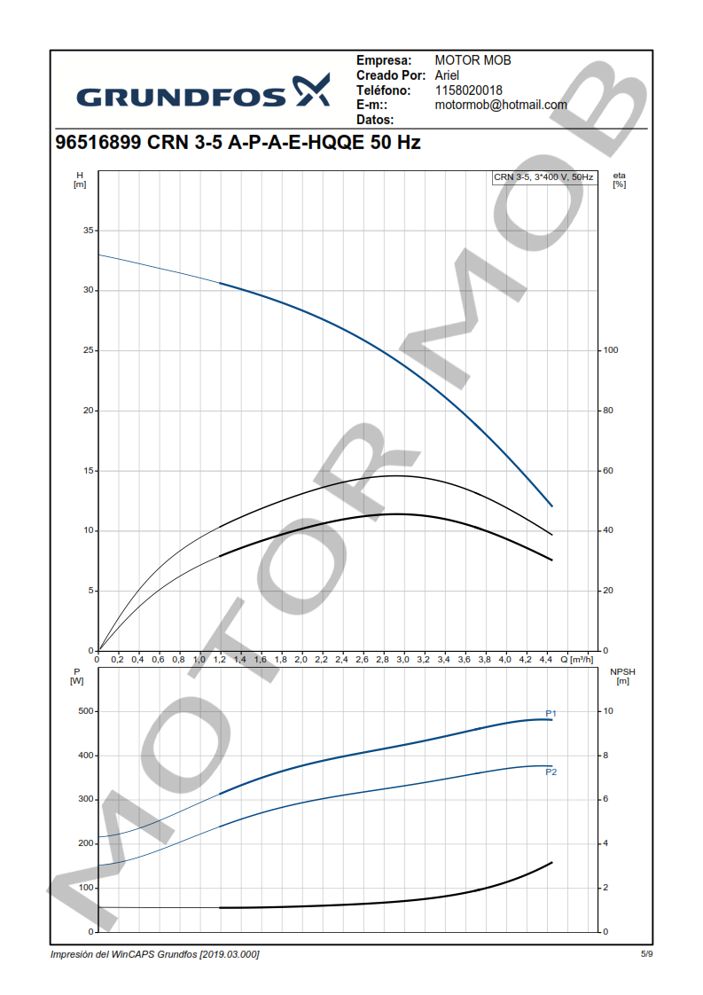 BOMBA MULTICELULAR VERTICAL – GRUNDFOS – CRN 3-5 – 0.5 HP – TRIFASICA – ARTICULO 96516899